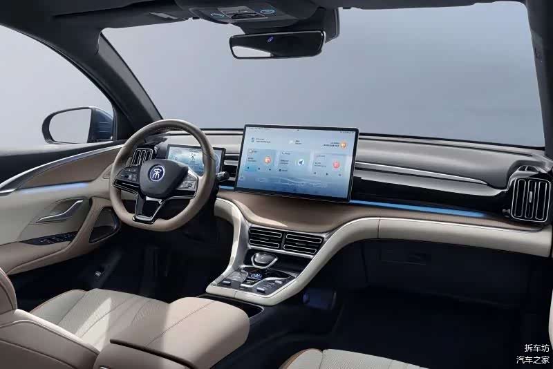 内饰配置方面,长安启源Q05延续了家族设计理念。采用平直的线条来强化中控台的层次感,显得简约而不失精致。10.25英寸全液晶仪表以及最大12.3英寸的悬浮式中控屏,符合当下市场需求。该车全系标配基于4G网络的车联网系统,为用户提供了便捷的在线服务和丰富的娱乐功能。该系统还支持OTA升级以及手机APP远程控制功能。在高配置的车型上,长安启源Q05还提供了L2级驾驶辅助系统、可开启全景天窗、感应式后备箱以及前排座椅加热等功能。