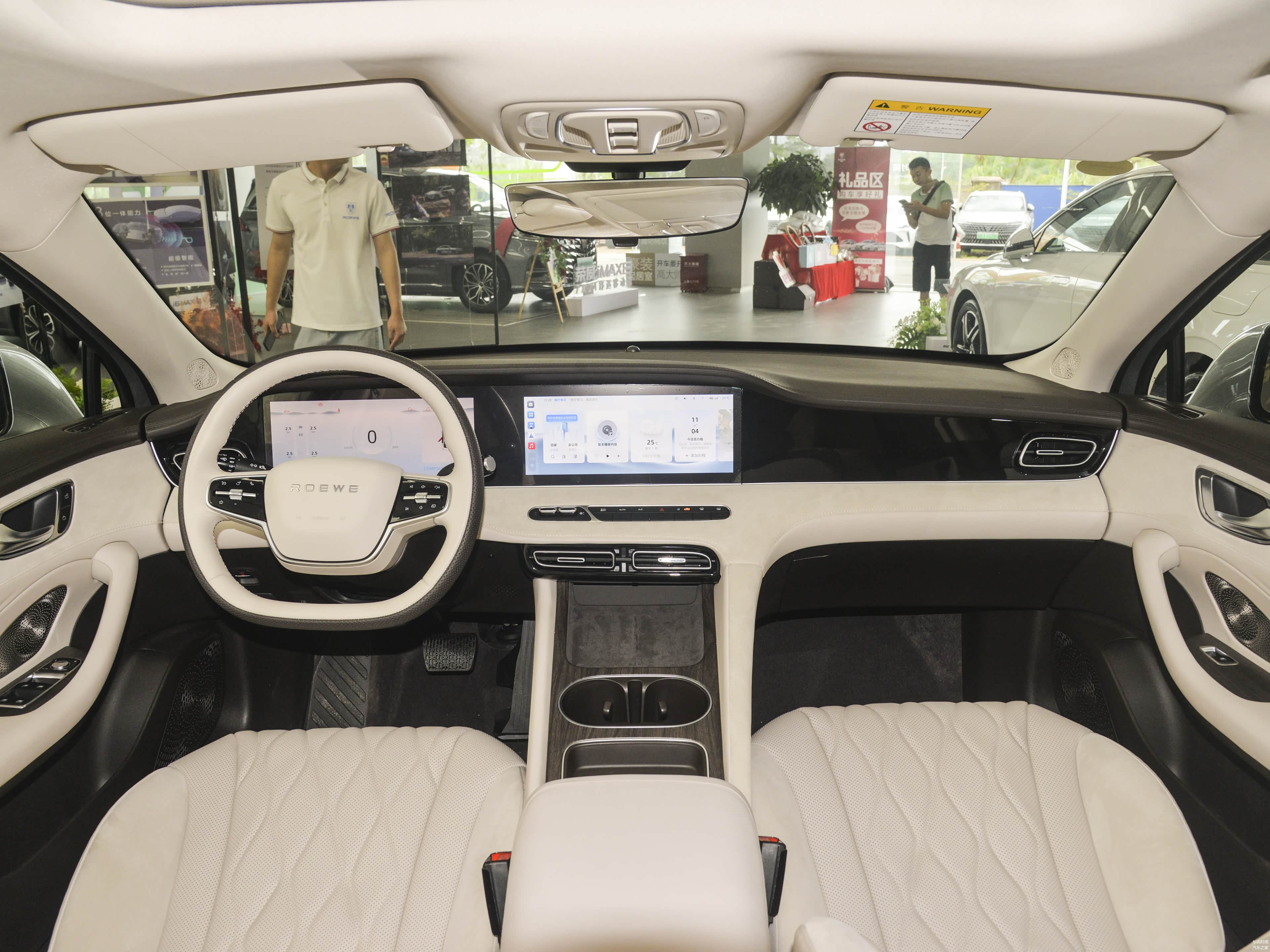 步入车内,荣威D7 DMH的内饰提供了墨染黑和粟米白两种配色,一个稳重,一个时尚。用料方面颇为充足,中控台的主要区域均选用了皮质材料覆盖,门把手和空调出风口等部位使用了镀铬装饰,中央扶手区域还加入了胡桃木色饰件点缀,使品质感得到显著提升。除此之外,12.3英寸的触摸式中控屏与全液晶仪表构成的双联屏亦是一大亮点,贯穿整个中控台,并带来了一定的视觉冲击力。