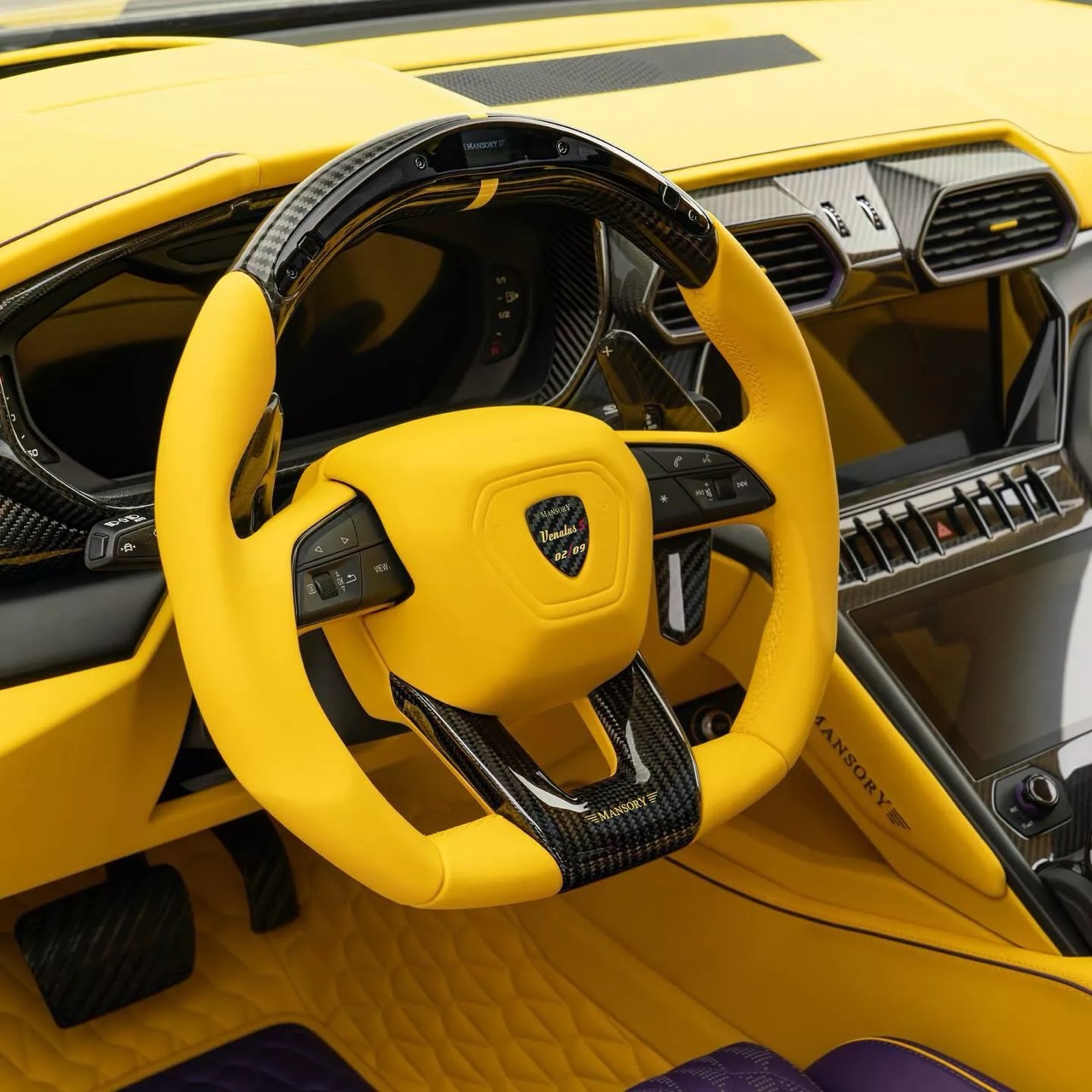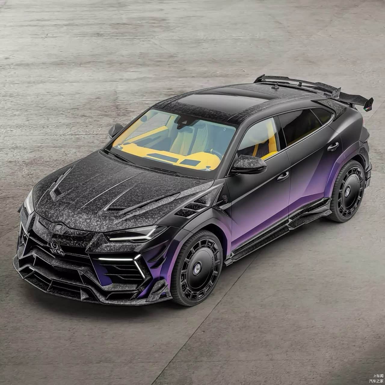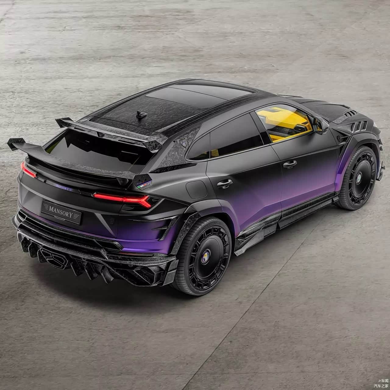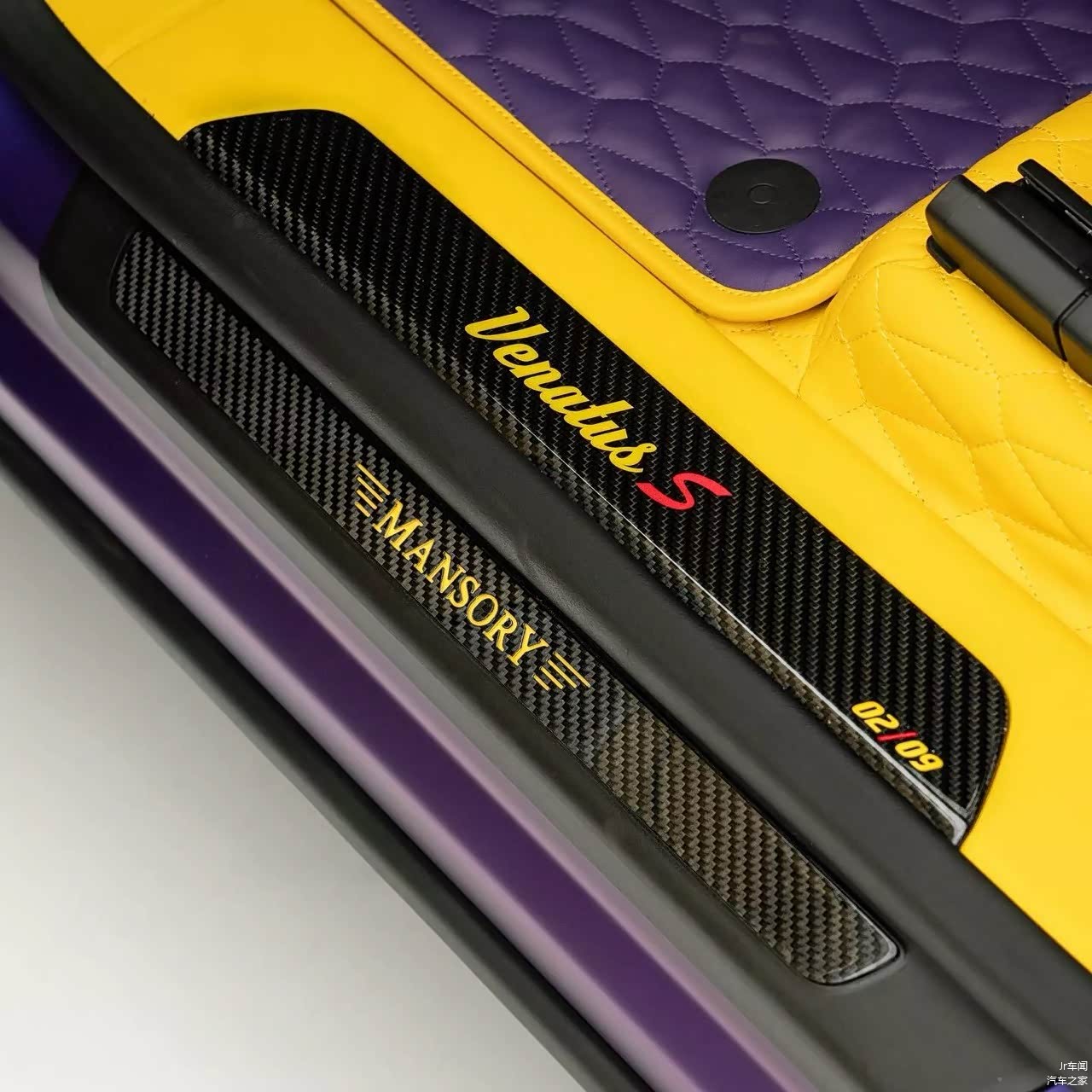 内饰同样经过大幅度升级,首先是跟洛杉矶湖人队相似的紫黄配色,既能活跃车内氛围,同时又能带来独特的观感体验;其次是用料升级,原厂面料完全被Mansory更高级的皮质/欧蒂兰面料取替,同时装饰件全升级为碳纤维材质,由取带来了更高级的车内氛围;最后就是Mansory专属的碳纤维装饰件、地毯以及限量徽标。