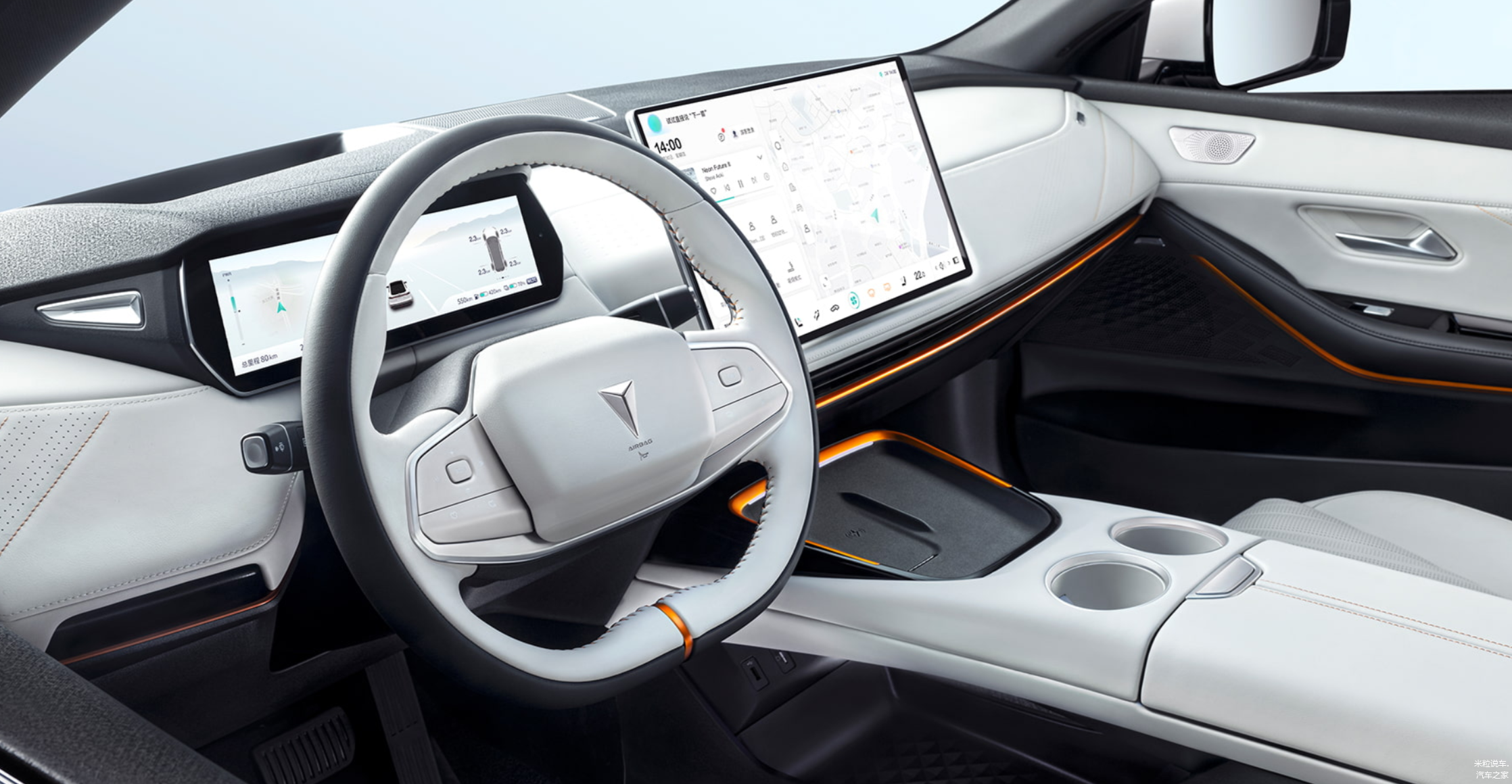 来看内部设计,深蓝SL03采用了环抱式座舱加精致的撞色潮流设计,再加上立体式的智能座舱,实用性能以及舒适性都很不错。车内拥有双悬浮屏幕的设计,还拥有D字造型的双色超纤皮质方向盘,也匹配了对称式的中央扶手,带有无线充电功能。而座椅更是时尚的双拼色带打孔的设计,还支持12项电动调节。