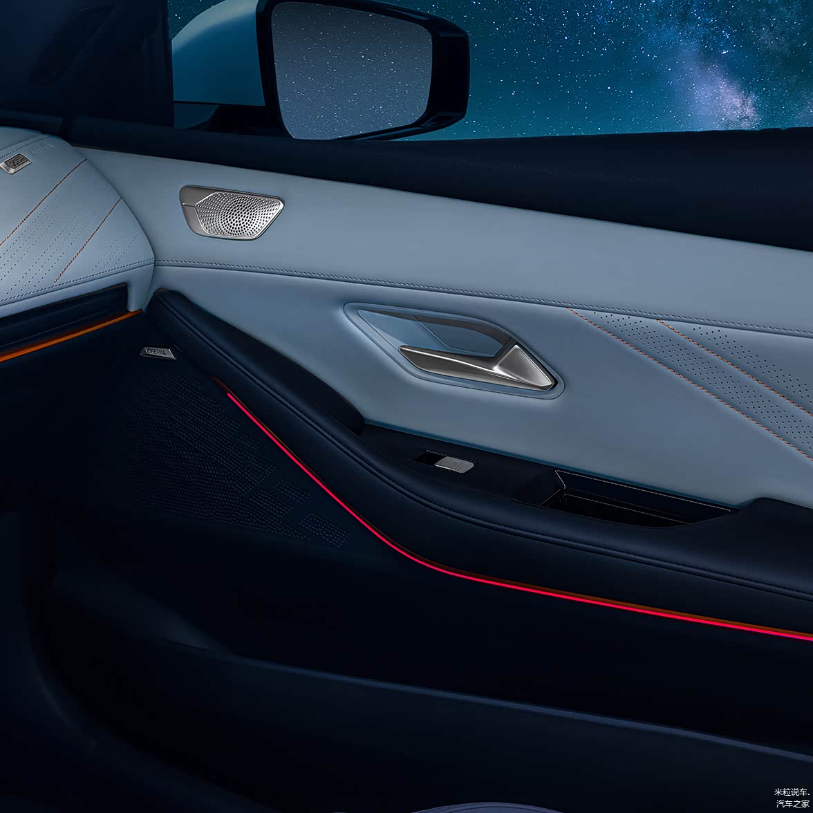 这款深蓝SL03不仅拥有64色豪华氛围灯,而且氛围灯可以根据音乐以及驾驶模式进行调节。此外,后排自带触摸空调,这是一套独立的空调系统。