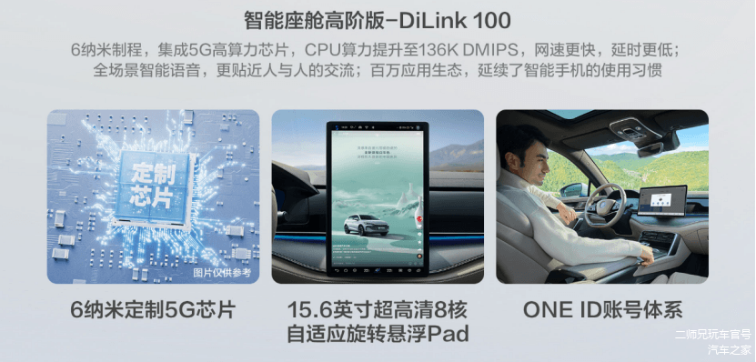 内饰方面,汉唐荣耀版都没有发生大的变化,同时也都进行了升级,新增主副驾10点式SPA级按摩座椅、智能香氛、W-HUD抬头显示、50W手机无线充电等配置,同时也都搭载了高通深度定制的6 nm制程芯片,整体性能超过8155芯片,智能座舱升级为DiLink 100高阶版。