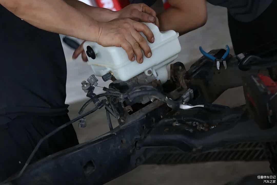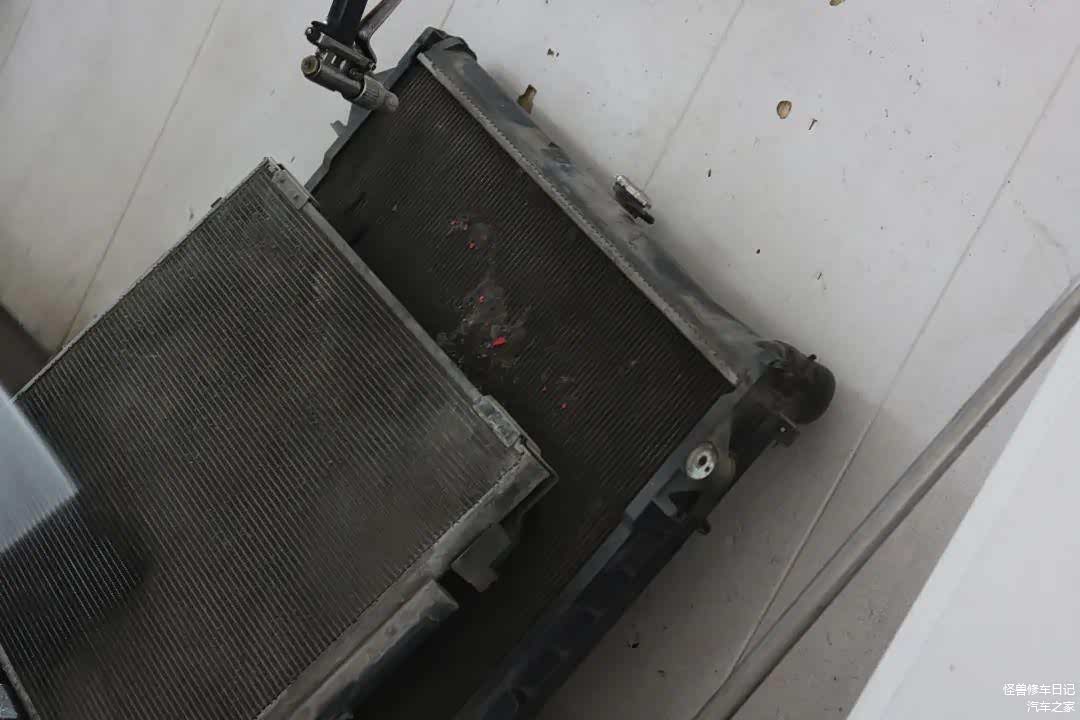 水箱、冷凝器也回装好了,采用虹吸方式重新加入冷却液,避免气阻进入产生高温现象。