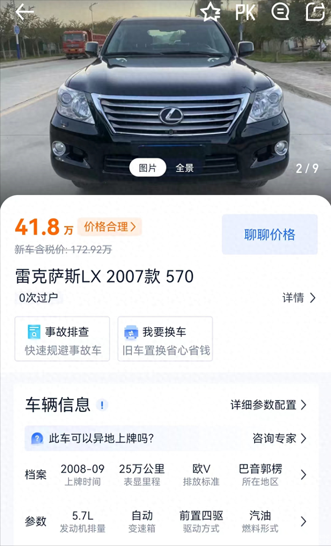 先简单介绍一下2007款雷克萨斯LX570,你没看错,当年裸车售价160万左右,绝对的实力派大佬座驾,虽说是十六年的老车了,但是二手车价格依旧坚挺,30万公里以下,没有40万+还拿不下来,等于一年贬值10万都没到,比同时期的路虎发现4、宝马X5、奥迪Q7这种百万级别的车型保值太多了。