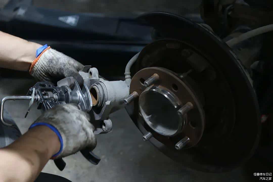 后制动卡钳有一个已经卡死了,需要更换一个。