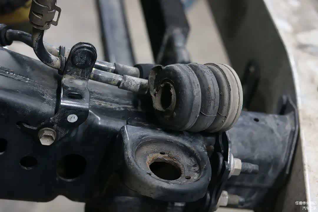 做了车体分解,才能更换这玩意。16年的车龄,40万公里,大梁胶套基本都老化了,紧致感、缓冲性能都到使用极限了,不换的话,这车开起来不可能多舒服。