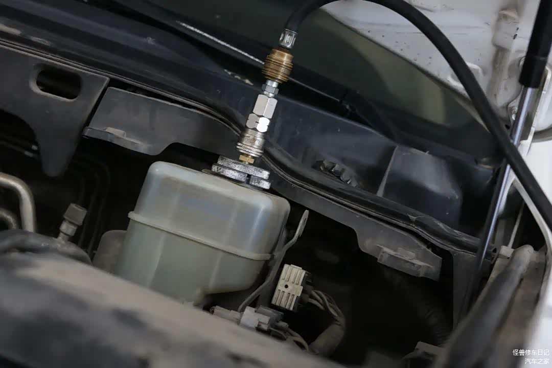 避震系统还需要更换一下液压油壶,这款车可以通过液压系统控制减震器高低升降,这个液压油壶是储存减震器液压油的。