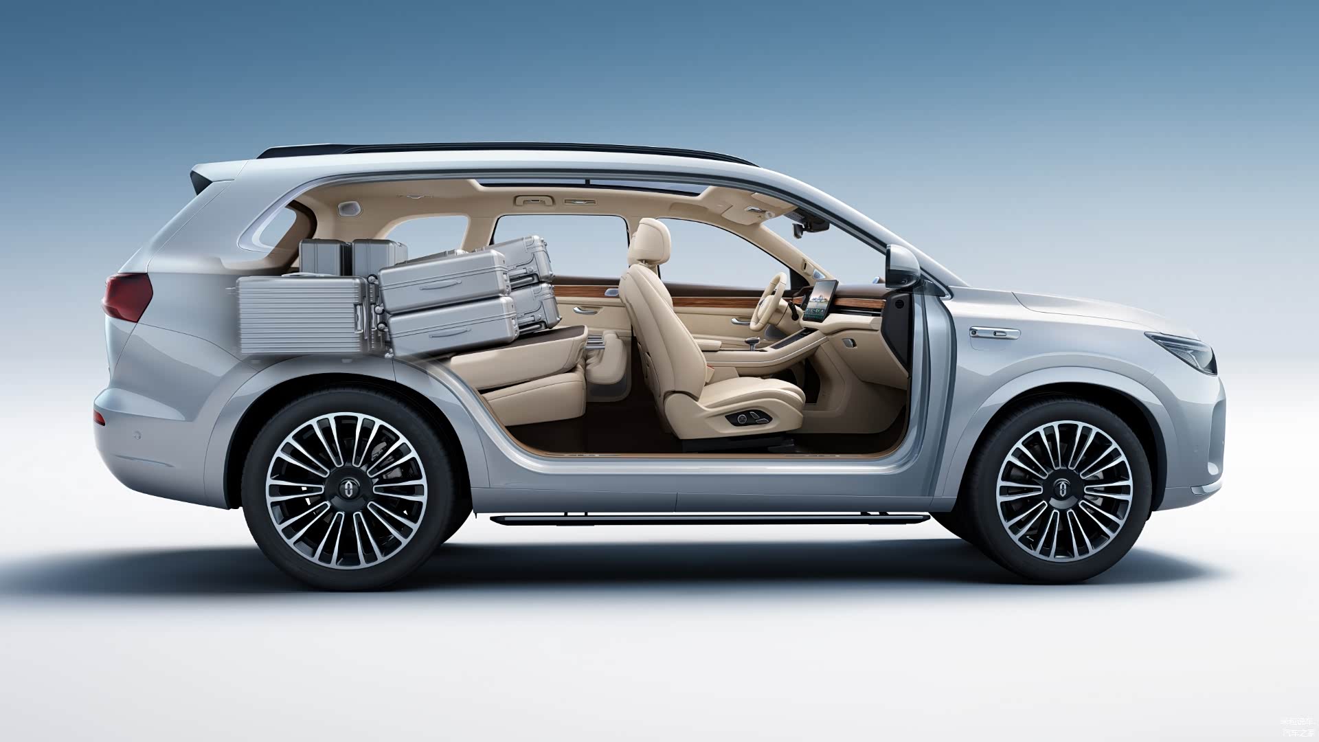 这款问界M7内部空间宽敞,厂家用“大空间”来定义,比如后备箱可同时容纳12个20英寸的行李箱,同时第二排座椅放倒后可以形成1619L的超大储物空间。不仅后备箱空间宽敞,车内驾乘空间也很理想,所以厂家更是开发出了VIP影院模式,甚至可以投放投影,而且还自带了大床模式,外出露营非常舒服,相当于长2m宽1.5m的超大床,再加上全景天窗,舒适度表现优秀。值得一提的是,问界M7还为第二排乘客专门准备了零重力座椅以及搭载鸿蒙系统的后排娱乐屏幕,后排小桌板等配置。