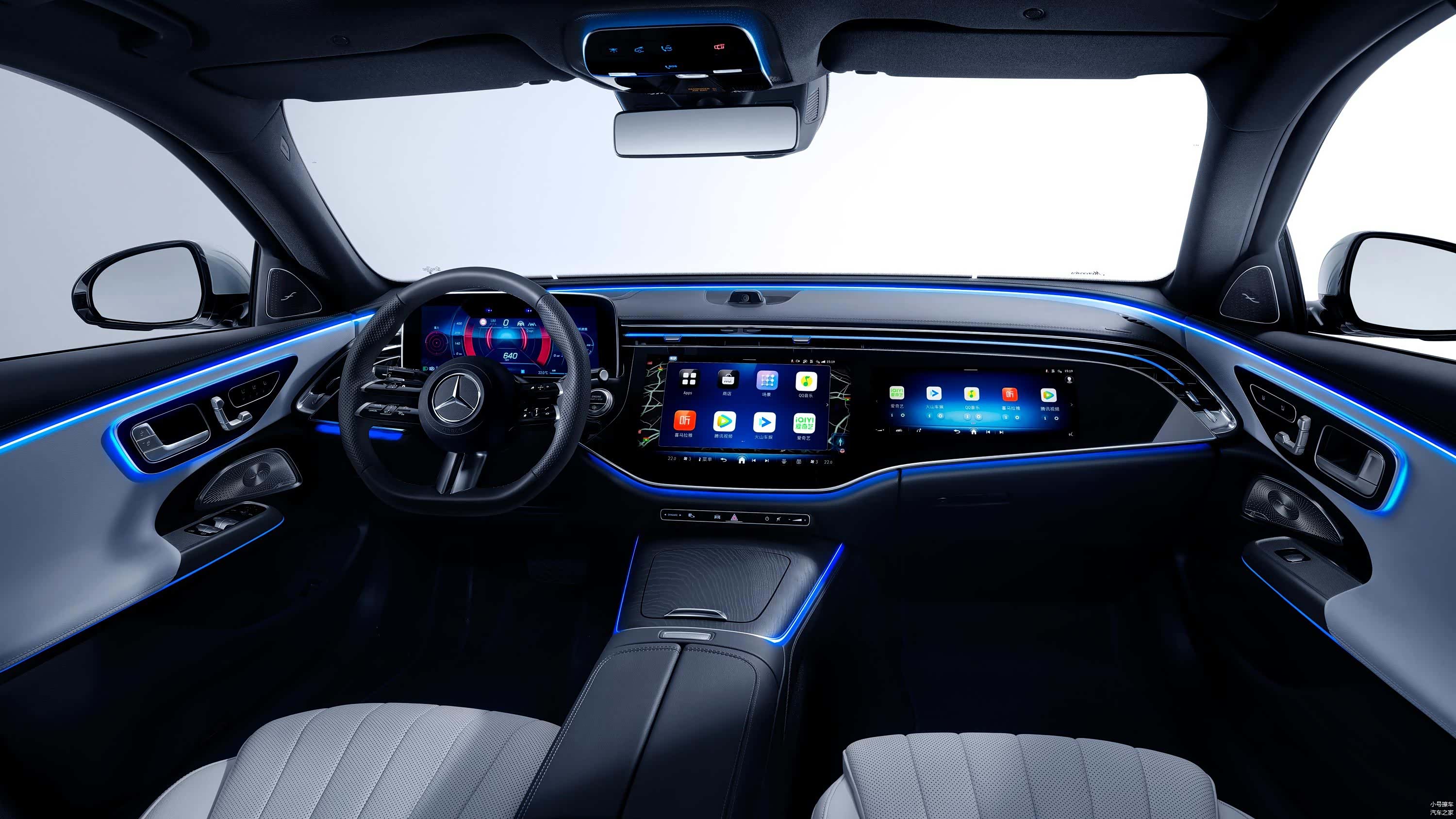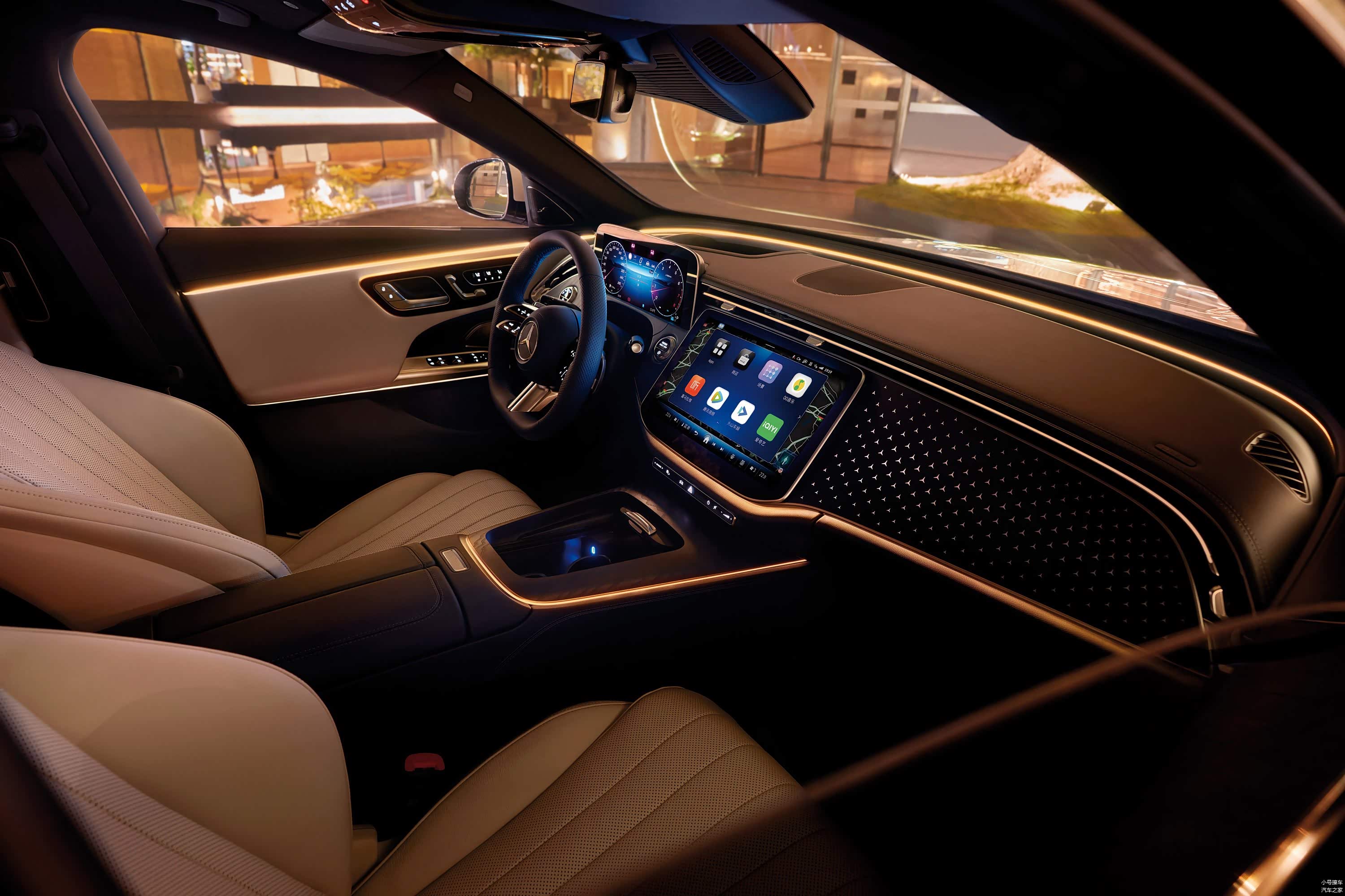 内饰方面,新车提供有三幅式多功能方向盘、悬浮式全液晶仪表盘、内嵌式中控屏以及电子怀挡,E 300 L尊贵型还配备有副驾驶娱乐屏,整体科技感方面营造的非常到位。