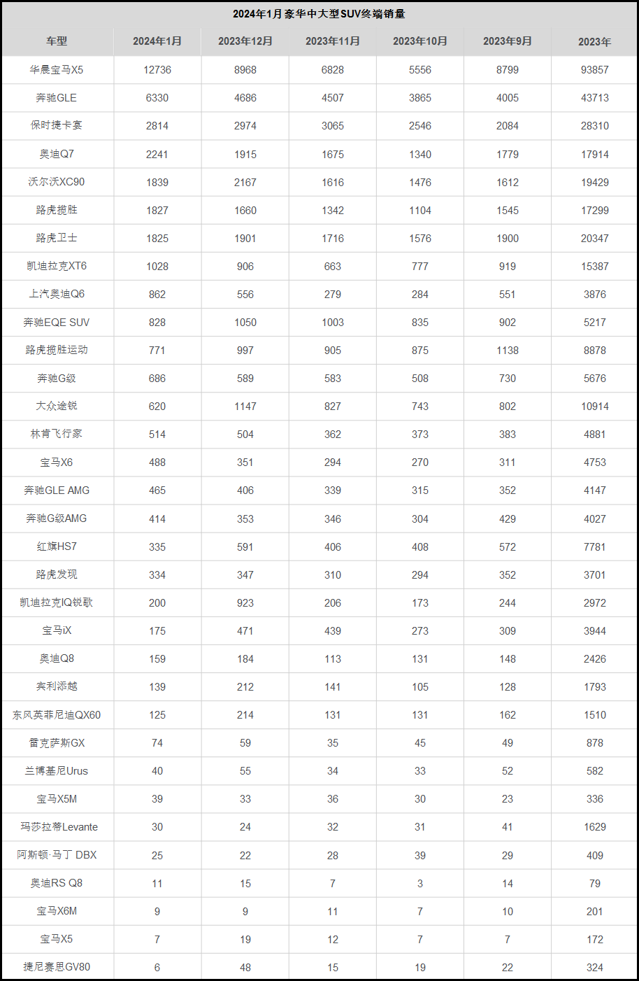 豪华中大型SUV市场是一个竞争激烈的细分市场,也是一个明星车型很多的细分市场。和很多豪华车细分市场一样,德系豪华品牌在这个市场也拥有较多优势;同时,路虎和沃尔沃也有让人满意的销量表现。