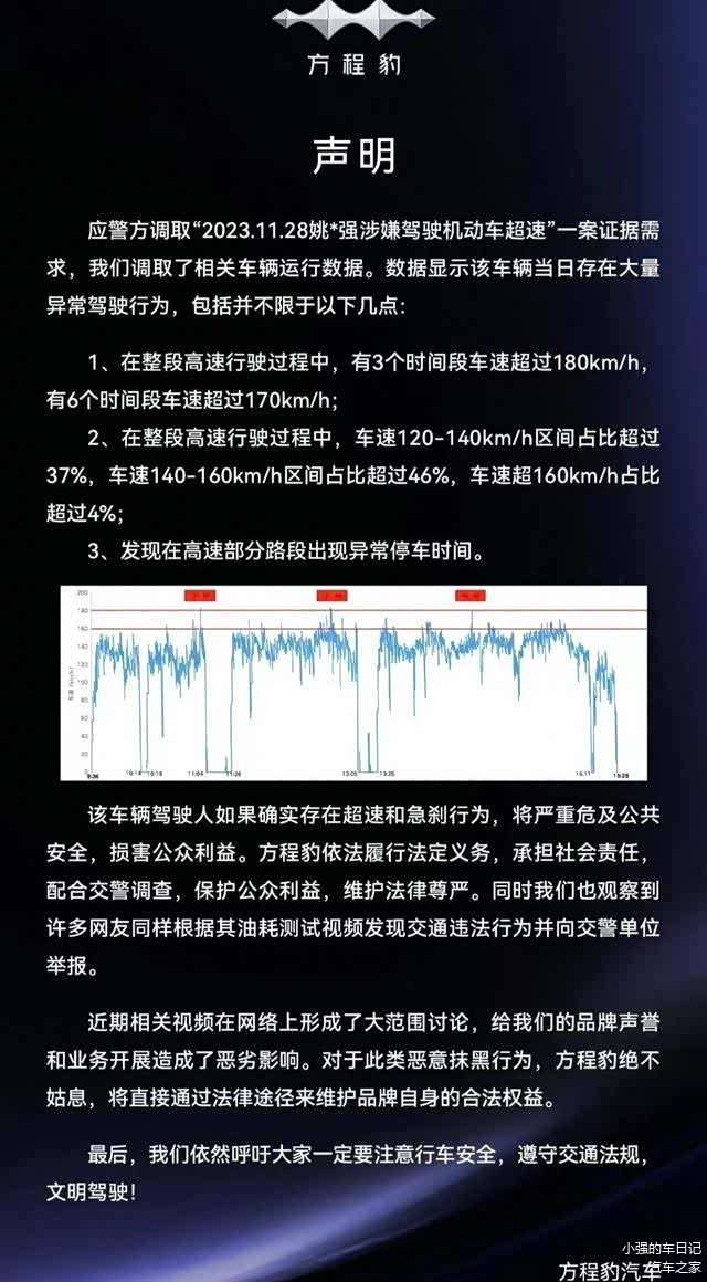 原本这只是一次很平常的新能源车测评,没想到在网上发酵后,方程豹官方也出来发声了,直接公布了姚某的行驶数据,核心意思有两点: