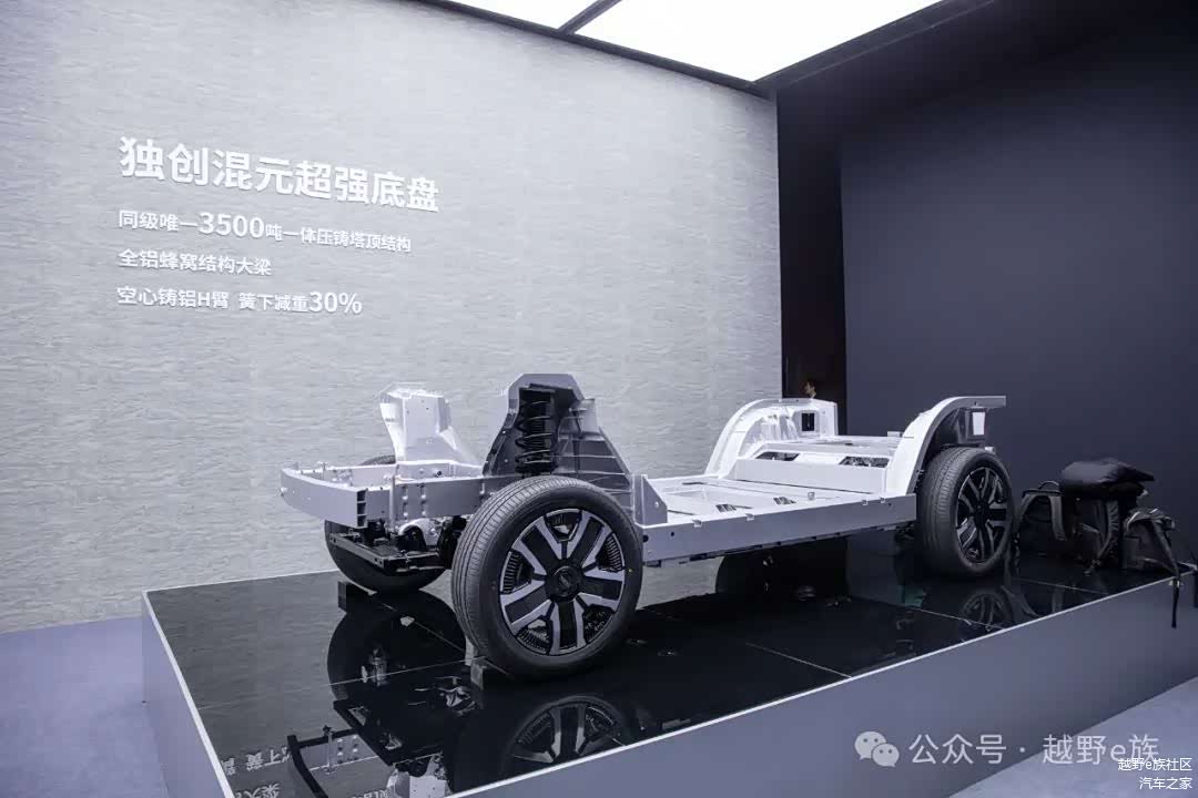底盘方面,采用iCAR独创混元超强底盘,和路虎同源技术的H臂多连杆+液压衬套底盘结构,全铝蜂窝结构大梁,构成超强刚性基础,从而带来了较强的全地形能力。