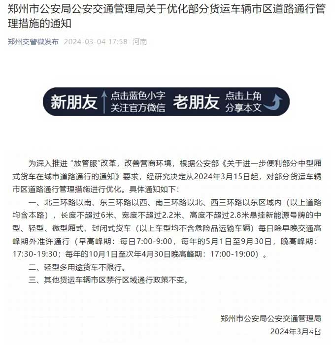 郑州对于皮卡的现行政策是2016年开始的允许国四以上排放的皮卡进入市区,但高峰时段禁止驶入三环内并且四环内高架桥全天限行,对于皮卡用车还是存在着较多障碍。并且在2021年开始皮卡几乎无法驶入四环内,一定程度上来说抑制了当地的皮卡发展。而在皮卡乘用化、高端化的大背景下的2024年,郑州终于对皮卡施行全面解禁。