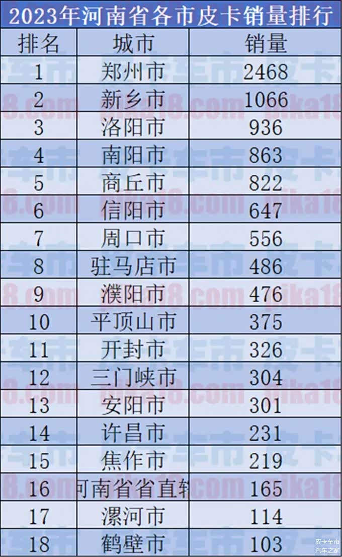 结合销量来看,2023年河南省共计售出皮卡10458台,位列全国第13。而其中郑州23年全年便售出2468台位列全省第一,并且其中1670台为柴油车型,702台为汽油车型,纯电皮卡则是96台。在限行政策仍施行时便有如此销量成绩,而且在郑州市内销量第一的辖区为金水区,该区属于郑州市区,足以看出郑州市民对于皮卡的旺盛需求,相信在今年解禁后郑州的皮卡销量还会有进一步飞跃。