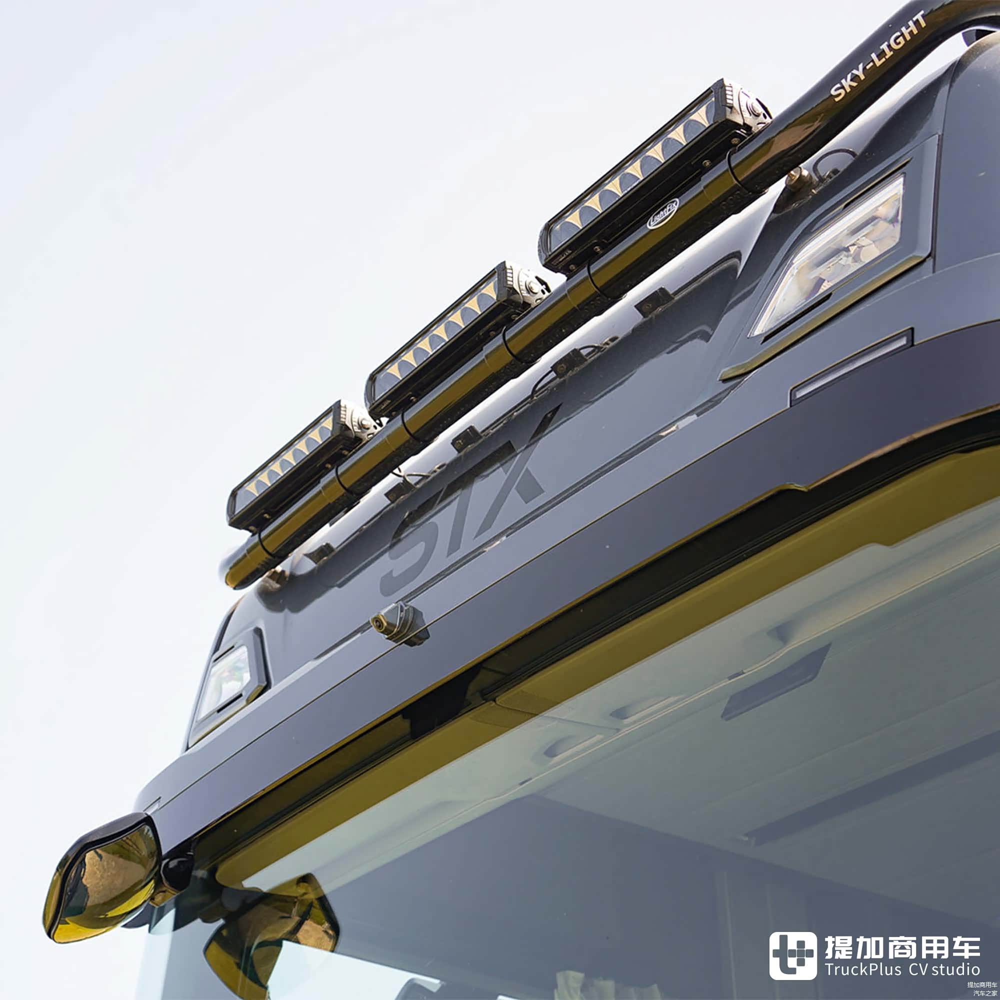 遮阳板上设计有前视摄像头,与车身其他处的摄像头组成360度环绕影像系统,便于驾驶员操控车辆。根据需要,车辆还可加装车顶灯架、LED探照灯等配置,兼具外观表现和实用性。