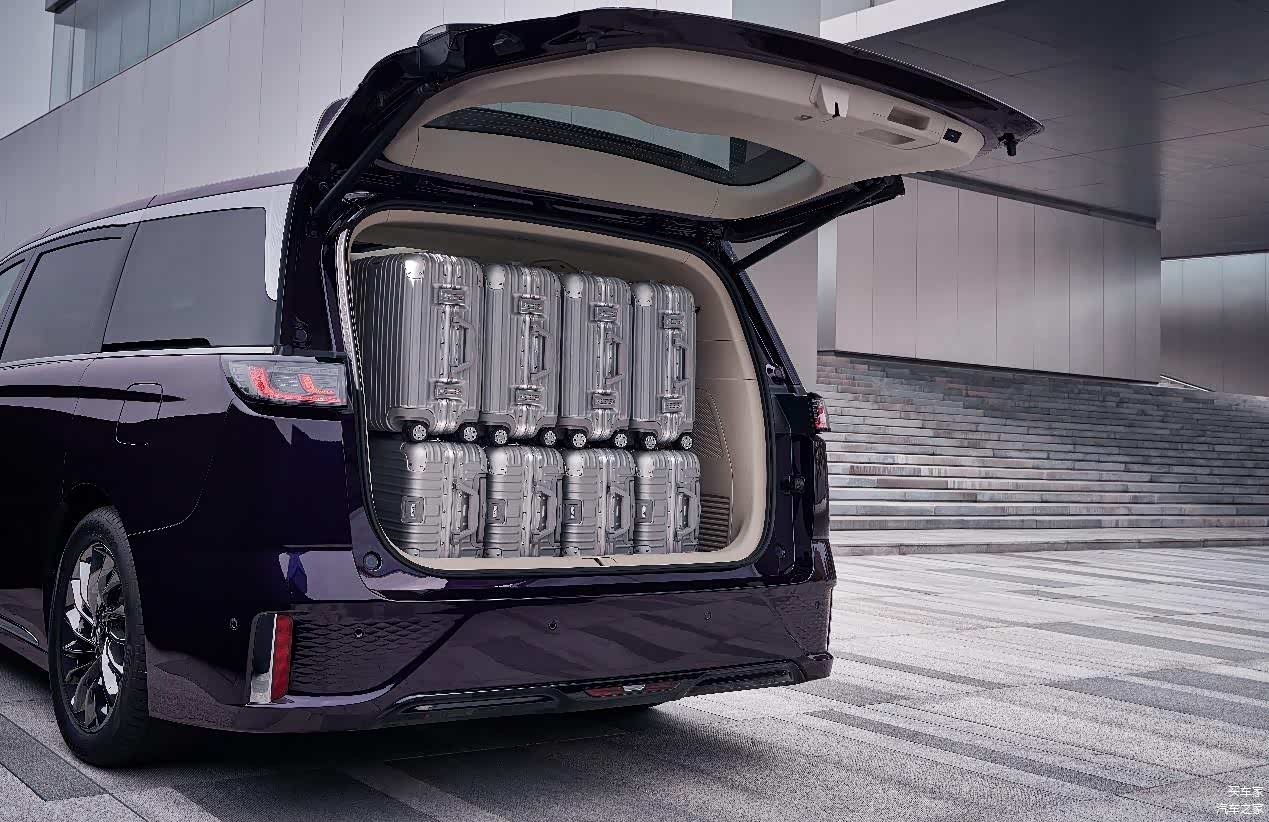 另外,MPV的第一要义是空间。家庭出行除了乘坐空间,还要考虑全车成员的行李装载空间。为此在底层架构、车身比例、造型设计等方面,MPV对于空间的考虑是要比SUV高一个量级的。理想L9重点考虑了这一点,但是跟新岚图梦想家、传祺E9这样的MPV相比也是没有优势的。尤其是新岚图梦想家比理想L9后备箱直接多出了100L,意味着至少可以多放5个登机箱,每个乘客在出游时都能被满足独立的行李空间。