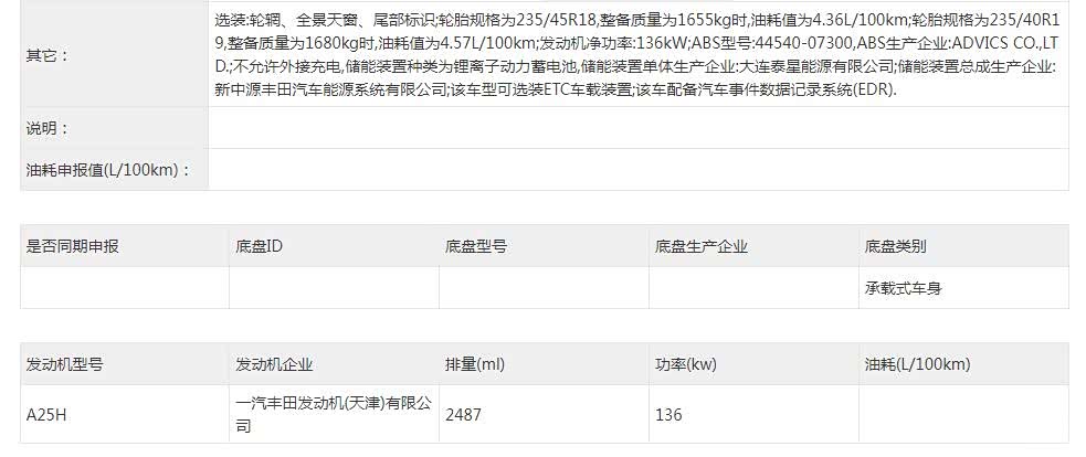近日,在工信部381批新车公示中出现了新款 丰田亚洲龙(图片 | 参数 | 询价)车型的申报信息,新车换装了最新的动力总成,与全新凯美瑞保持一致,后者虽然伴随着不少争议,但终究是完成了换代更新,而亚洲龙由于已经失去了海外版本原型车更新的可能,中国特供,那么只能由一汽丰田自己算改算更新,一步一步慢慢的来。