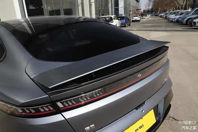 车尾部分,东风奕派π 007尾部使用了贯穿式尾灯组(灯腔内部集成了230颗LED光源),同时后包围底部还加入了大面积的熏黑装饰件+扩散器装置,并且四驱版车型还提供了电动尾翼(支持跟随车速、场景模式等情况下自动升起/收回)。