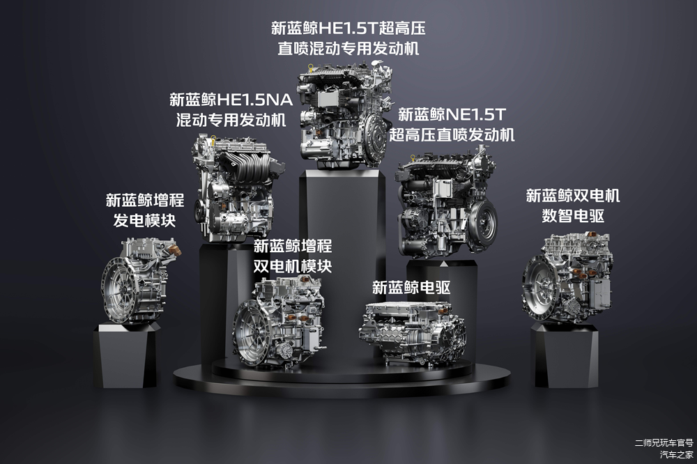 新蓝鲸动力,突出一个“全域全场景”,所谓全域,既包含人们熟悉的三电系统,也包括燃油发动机等核心零部件。