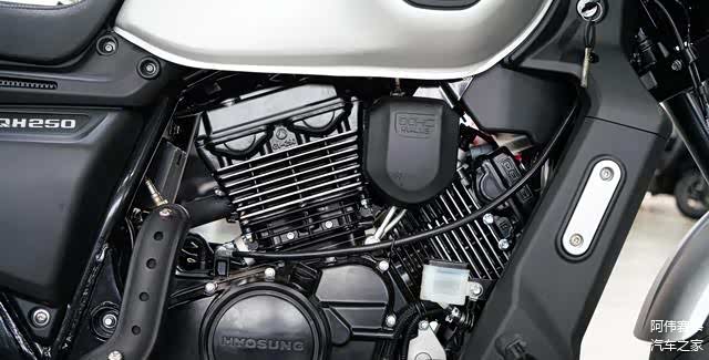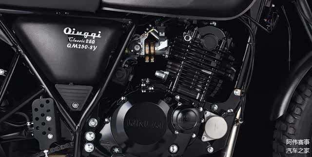 动力方面,这款车将采用一款250cc的单缸风冷电喷发动机,它实际排量249cc,最大功率13KW,最大扭矩18N·m,与之配套五档变速箱,动力调校偏中低转速,所以即便数据不漂亮,但低扭还算可以,动力特性和车型定位也比较相符。