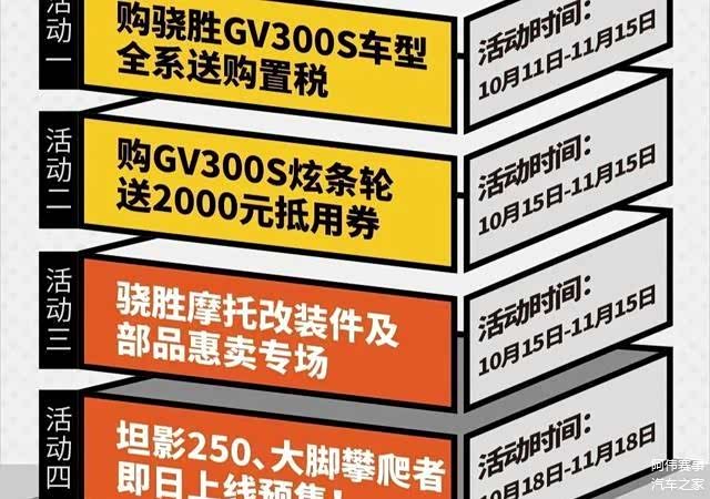 起步价14780元,骁胜GV300s开始促销,坦影和攀爬者上线预售