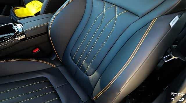 座椅部分采用了缝线+仿皮的材质,造型上更显精致,尤其值得一提的是,侧翼包裹非常到位,急速过弯也能牢牢的镶嵌在座椅上。