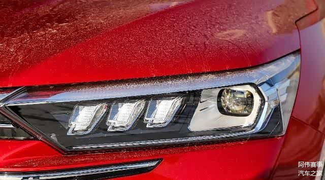 三点式LED前大灯,配合到远近一体的透镜灯组设计,并且集成了自适应远近光、延时关闭等功能。