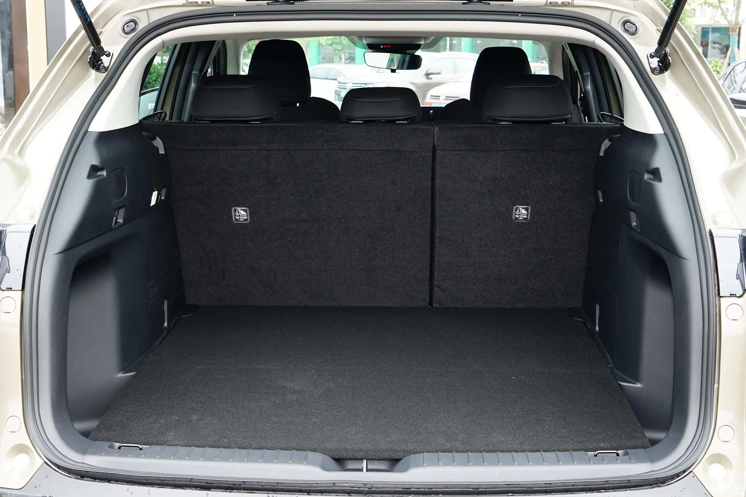 后备厢方面:马自达CX-50行也的后备厢空间宽大且规整,载物能力不错,它的后备厢在常规状态下有着435L的容积,后排座椅放平后纵深可达1.9米,而地板离地高度为730mm,比同级其他车型更低,搬运重物上车更加省力。除此之外,如果将马自达CX-50行也的第二排座椅放倒之后,可得到一个近乎平整的大空间,装载拓展能力应对短、长途自驾也完全绰绰有余。