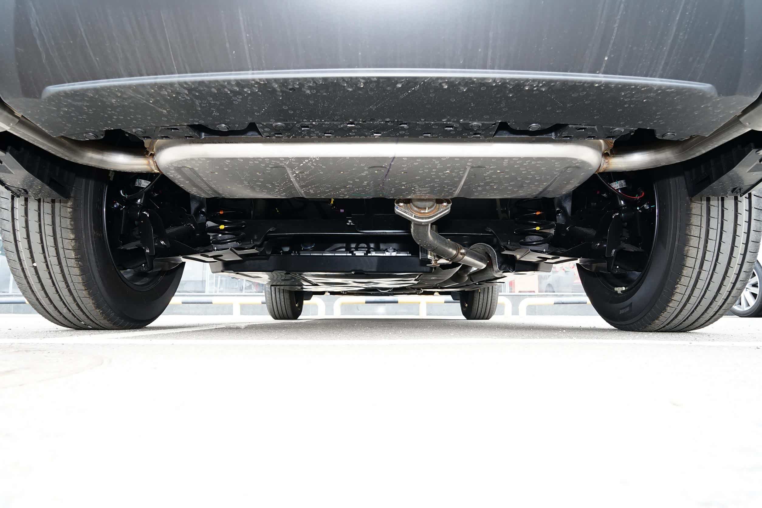 从侧面看,整体的轮廓流畅且舒展,并且加入了特征线条勾勒后营造出了不错的肌肉感,车身下部的黑色包围也更粗壮,更有野性一些。车辆尾部同样采用了简约的设计语言,双“U”字形灯组、黑色下包围和银色底部护板等等都与车头形成呼应,并且同样营造出了宽体的视觉效果,整体协调又耐看。