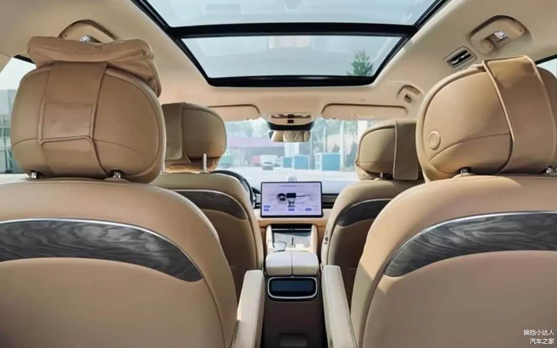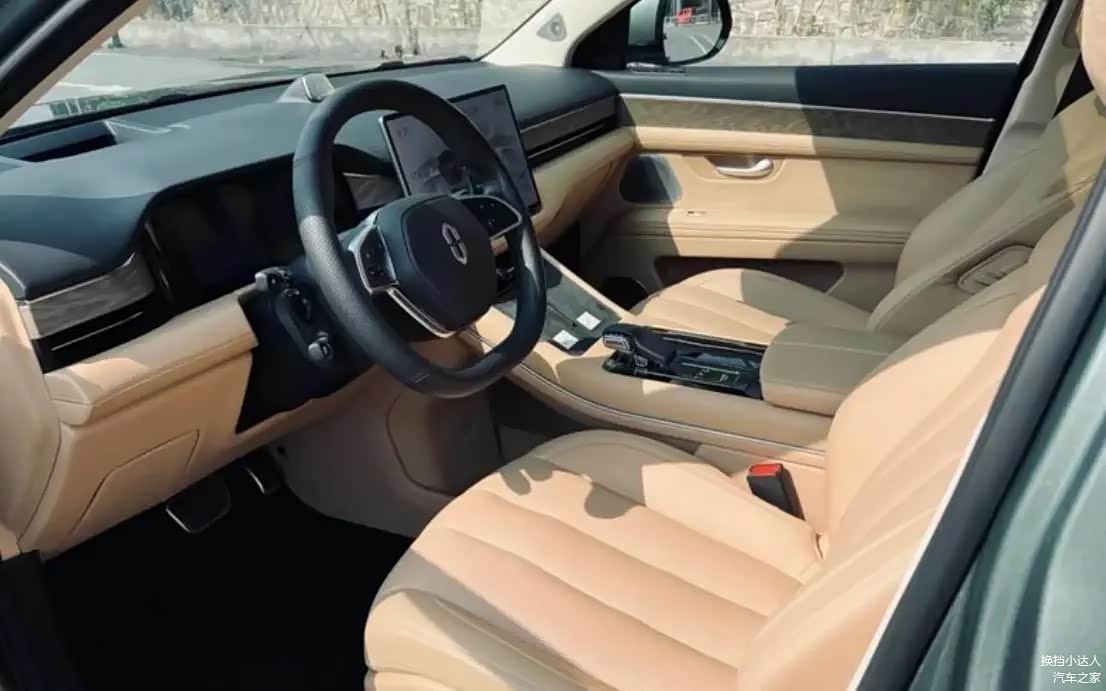 汽车的内饰风格得体,车内的部分区域采用的是软质和皮质材料包裹,缝线勾勒的较为清晰,部分细节处还装饰了木纹饰板,多功能方向盘的造型圆润,液晶仪表盘的数据显示清晰,悬浮式的中控屏内置的是鸿蒙OS车机系统。操控台区域保持一定角度的倾斜,无线充电的模块是有配备的,操控台下方进行了掏空的处理,丰富了储物空间的表现。