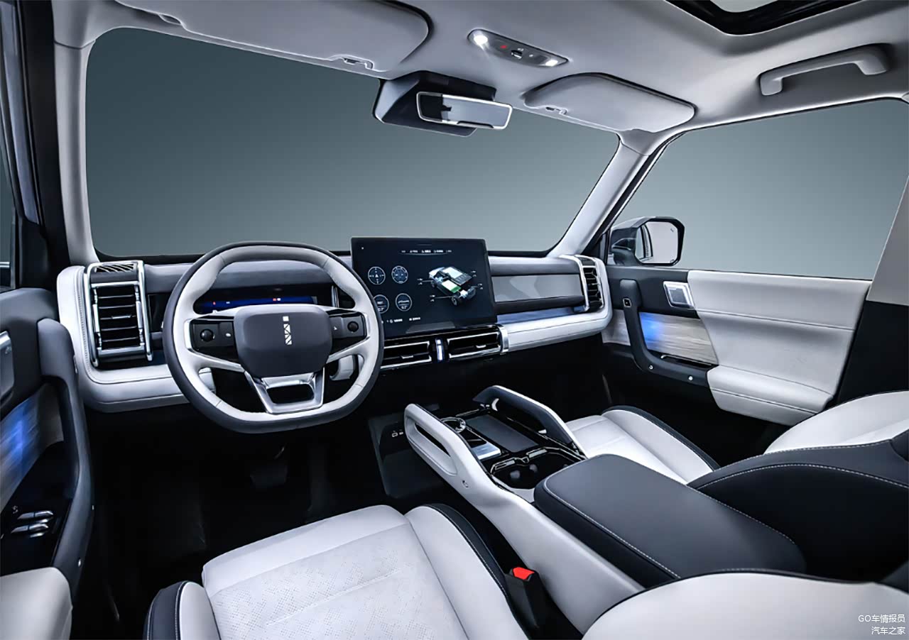 方盒子纯电SUV目前还比较少, 奇瑞iCAR 03(图片 | 参数 | 询价)的造型给人以个性硬派的观感,这款车的前脸有着不错的原创度,车尾还有一个小书包,气氛烘托得挺到位。内饰设计也比较硬朗,多采用了平直的线条,软性材料随处可见。