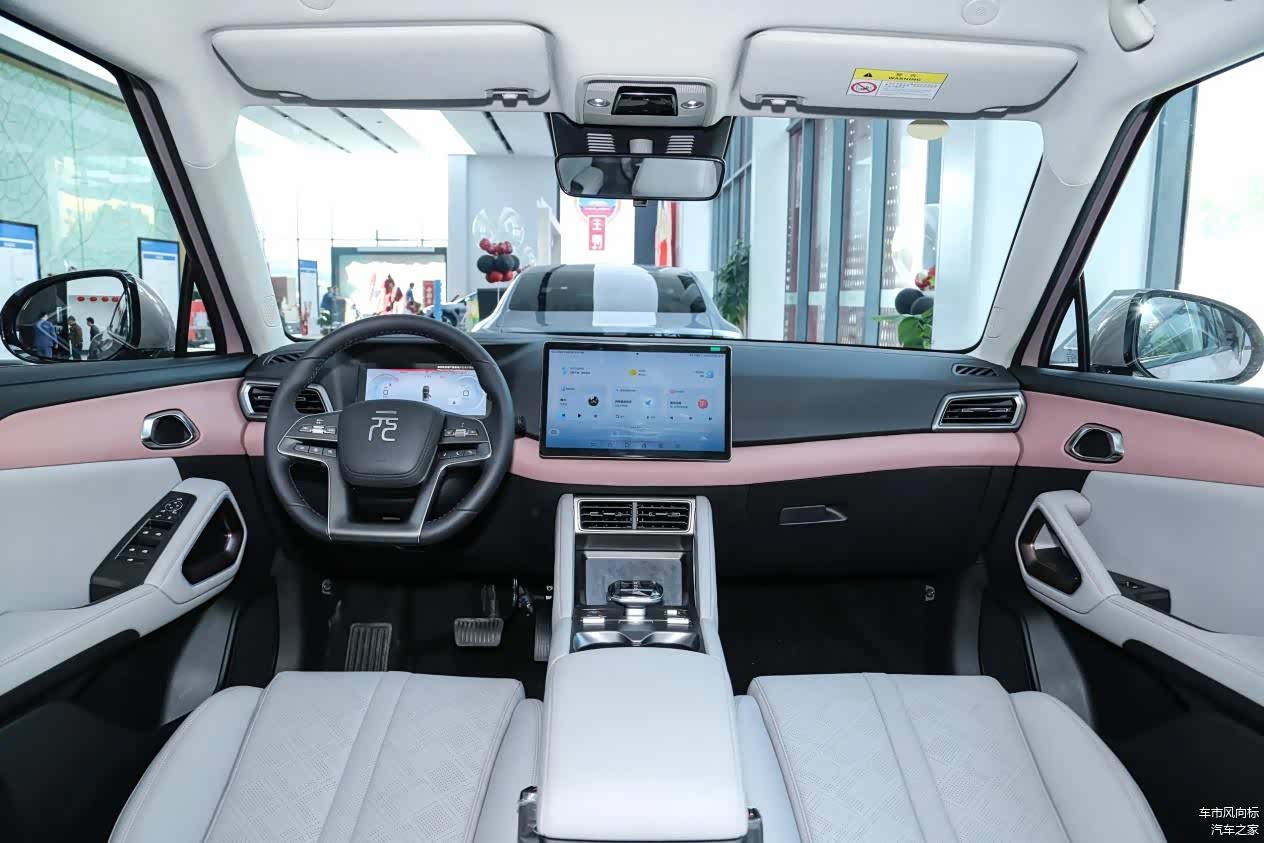 进入车内,新车采用黑色+米色的双色内饰配色,呈现出较为素雅的视觉感受,提供8.8英寸液晶仪表和12.8英寸悬浮式中控大屏,档把采用类似水晶材质打造,造型小巧精致,四周保留了部分物理按键,操作方便,车内配备全景天幕,前后排空间宽敞明亮。