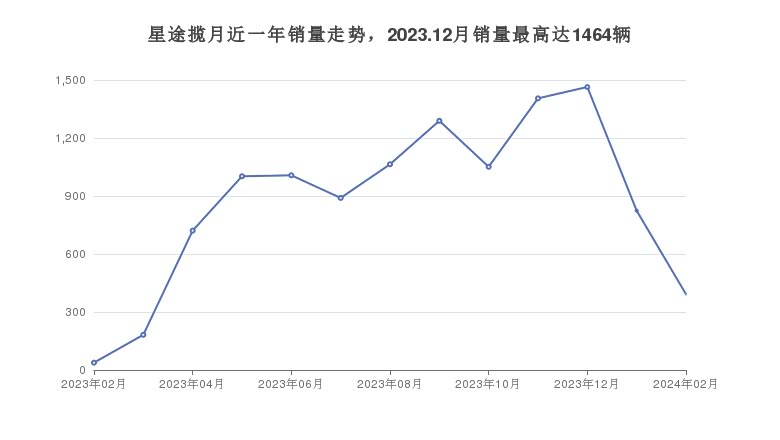 销量方面,星途揽月,在2024年02月份的销量为392辆,近一年星途揽月的,累计销量达到11329辆。