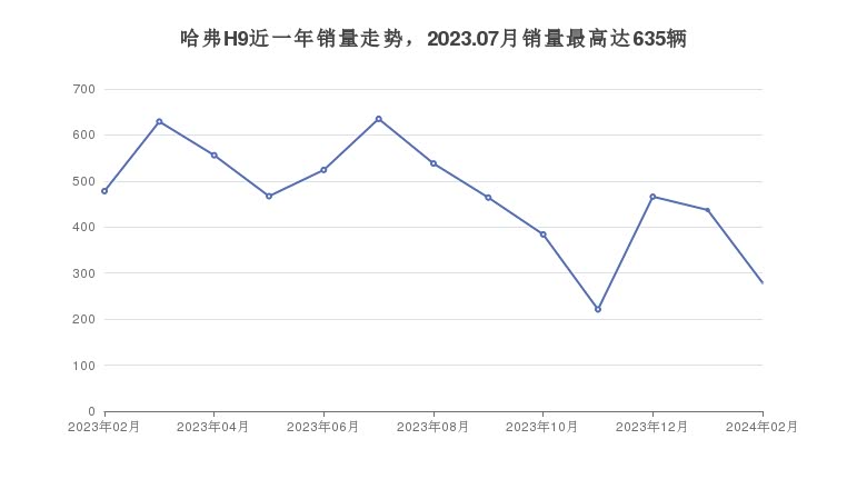 具体来看,该车型的车主,平均成交价为25.03万左右,首年保值率为80%,在同级别车中排名第75。销量方面,哈弗H9,在2024年02月份的销量为279辆,近一年哈弗H9的,累计销量达到6078辆。