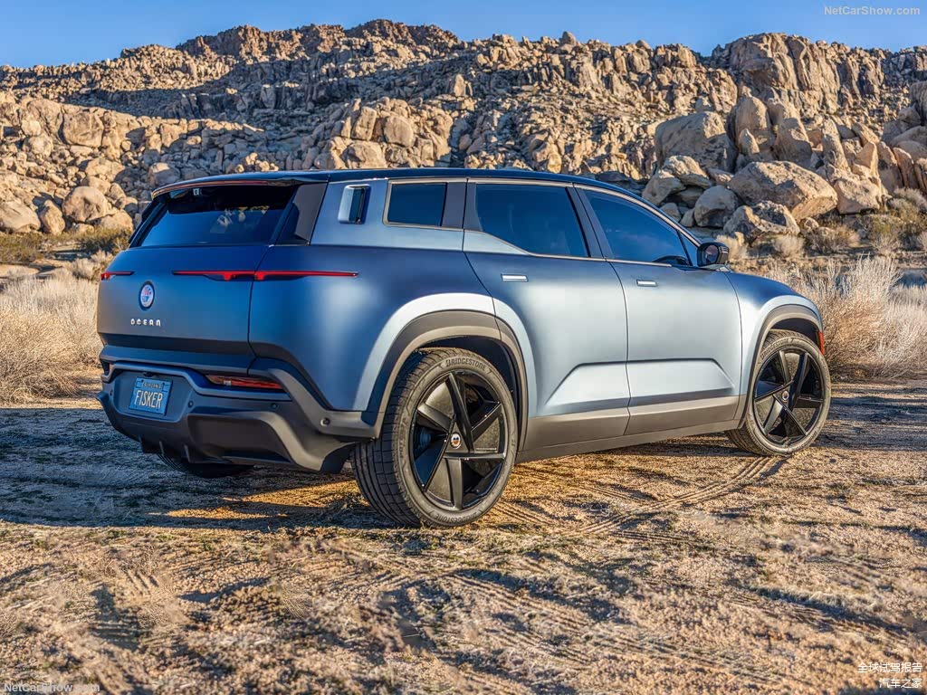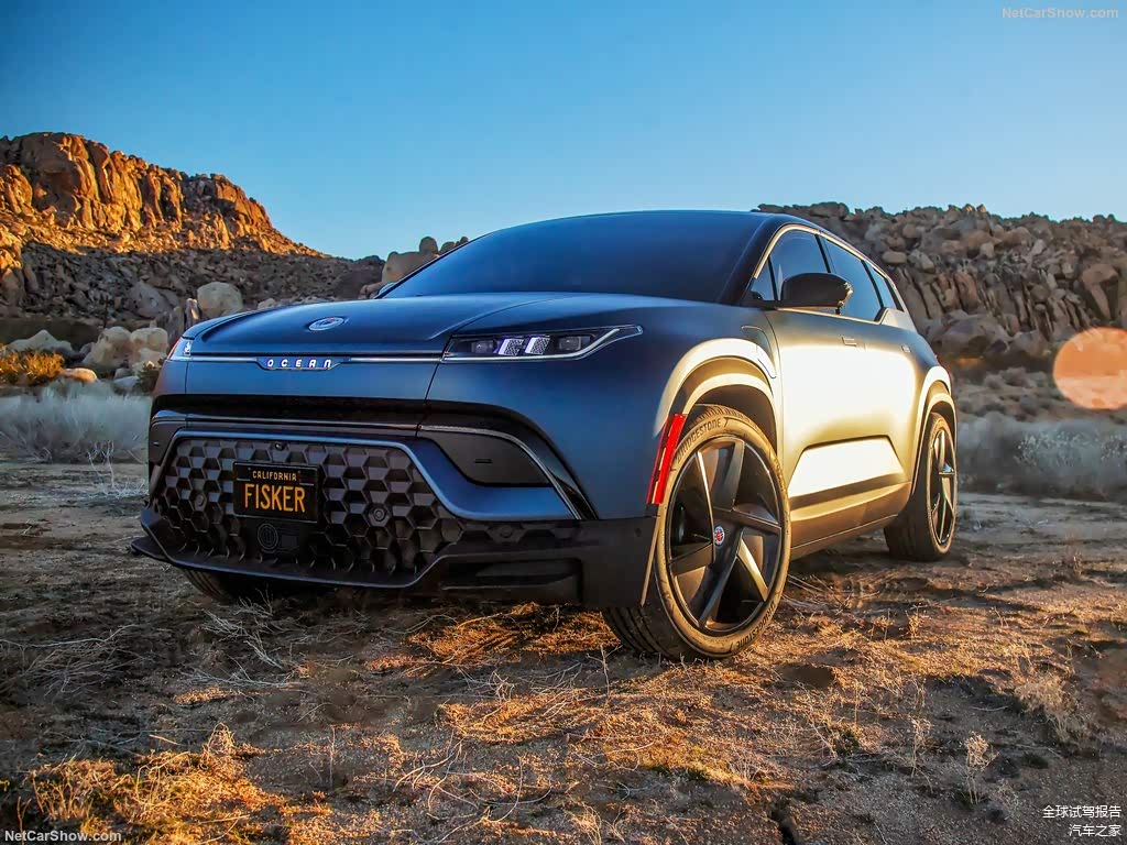 从整体上来看,Fisker Ocean的设计也确实有新意,车辆整体的风格呈现出紧致和大张力的形体表现方式。相比于同级别的小型SUV有明显的造型迭代感。另外和我们在国内经常见到的电动车脸盲式车头设计不同的是,Fisker Ocean的车头探索出了一条完全不同的电动车设计路线,进气格栅的图案化特征保留,而概念感也一点不熟新势力。