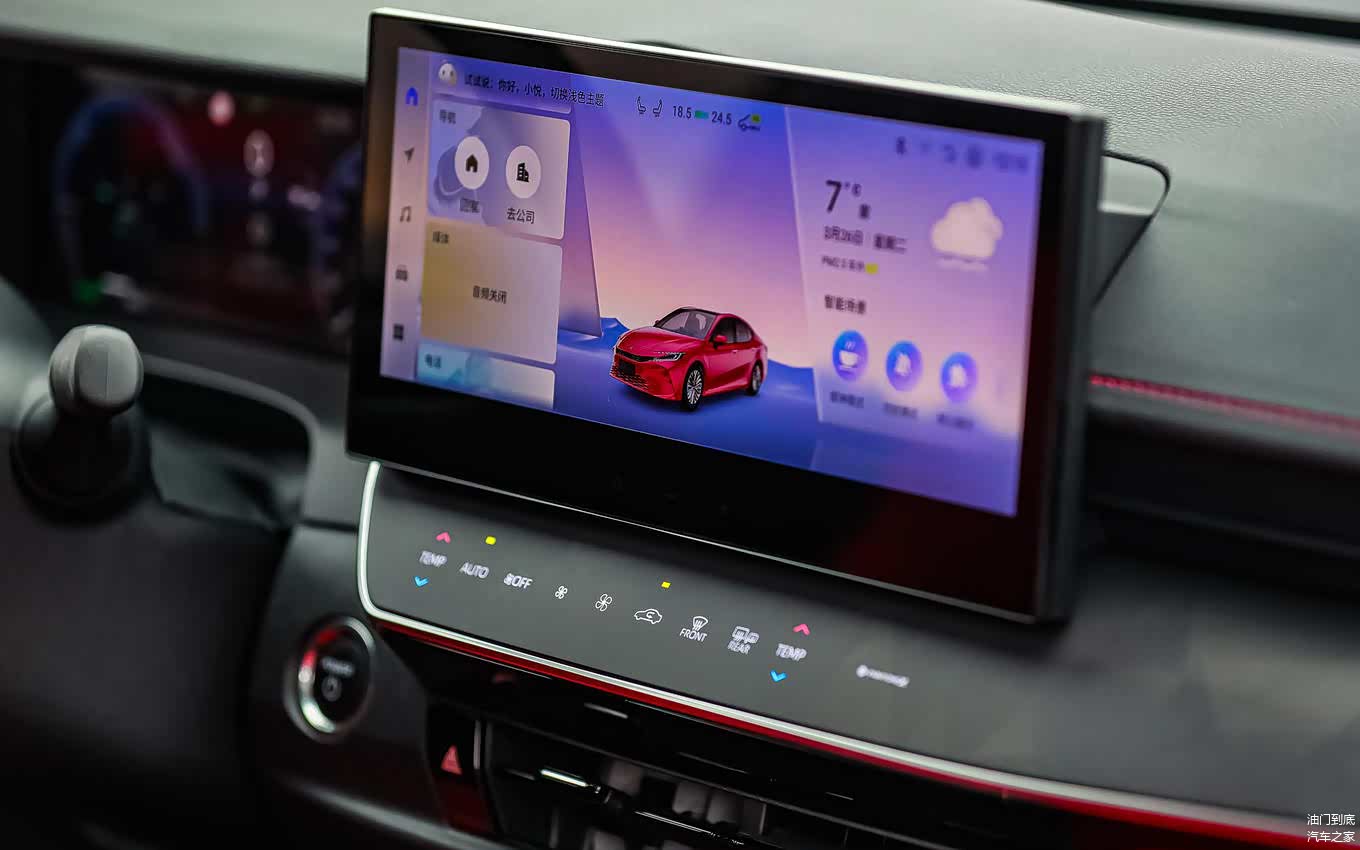 通过双12.3英寸多功能仪表盘与中控触摸显示屏,系统可以清晰的展示及调动大部分车辆功能。其中,一些常用功能都是一键式的,操作的便利性很是了得。在中控屏下方,触控按压式的空调控制面板,取代了此前的物理按键,看上去更加的科技。它的触控响应清晰,即便在行车操作时,也能得到很好的反馈。在新车的配置清单里,还包括了声纹、面容识别系统和数字钥匙,提供同级少见的苹果CarPlay、百度CarLife和华为HiCar手机互联功能,便捷性与实用性进一步加强。