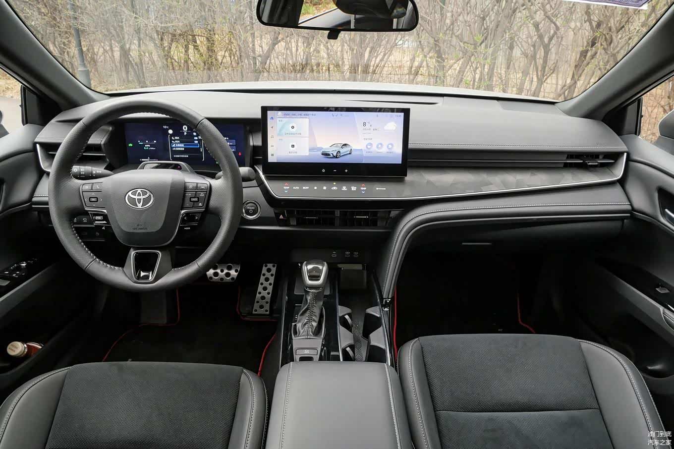 针对年轻消费市场,第9代凯美瑞提供三种外观设计,以及独特的赛博灰车身色。由于拍摄时天气原因,关于这款漆面的魅力只能有待用户们自行挖掘。我们的试驾车拥有2825毫米轴距和4950毫米车长,可以轻松搭载5名成人。车内,中央扶手区域经过了简化,变得更加的工整。挡杆前方设有手机无线充电装置,右侧提供体积巨大的储物槽。中央扶手箱空间较大,仪表台左侧的储物盒以及各种杯架等设置都很齐全。