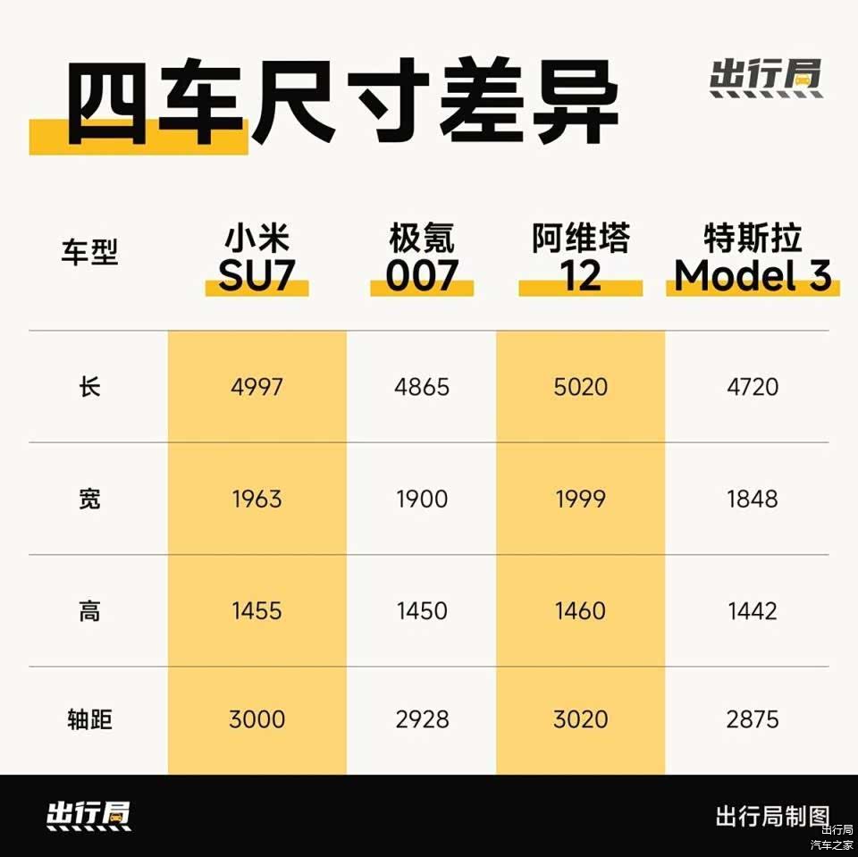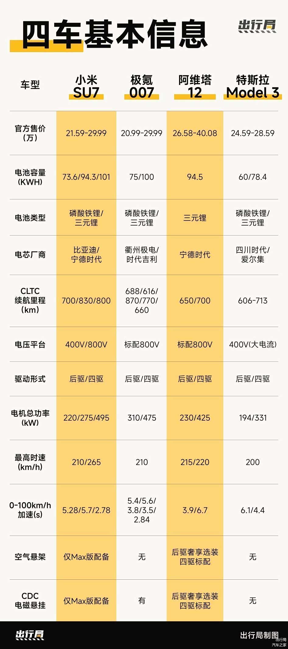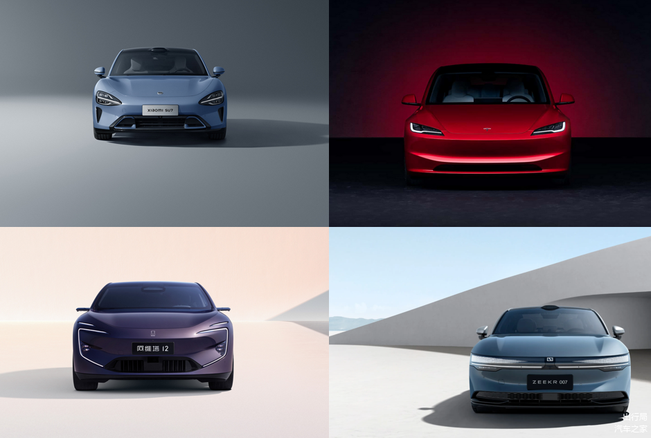 这几款车型除了小米SU7,分别是极氪007、阿维塔12、特斯拉Model 3。