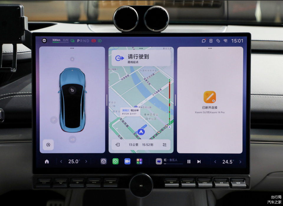 但实际上手机应用Pin到车内需要拓展部件,米家设备无感上车也必须使用小米手机,如果没有小米手机进行互联,小米SU7车机不能直接控制米家生态设备。