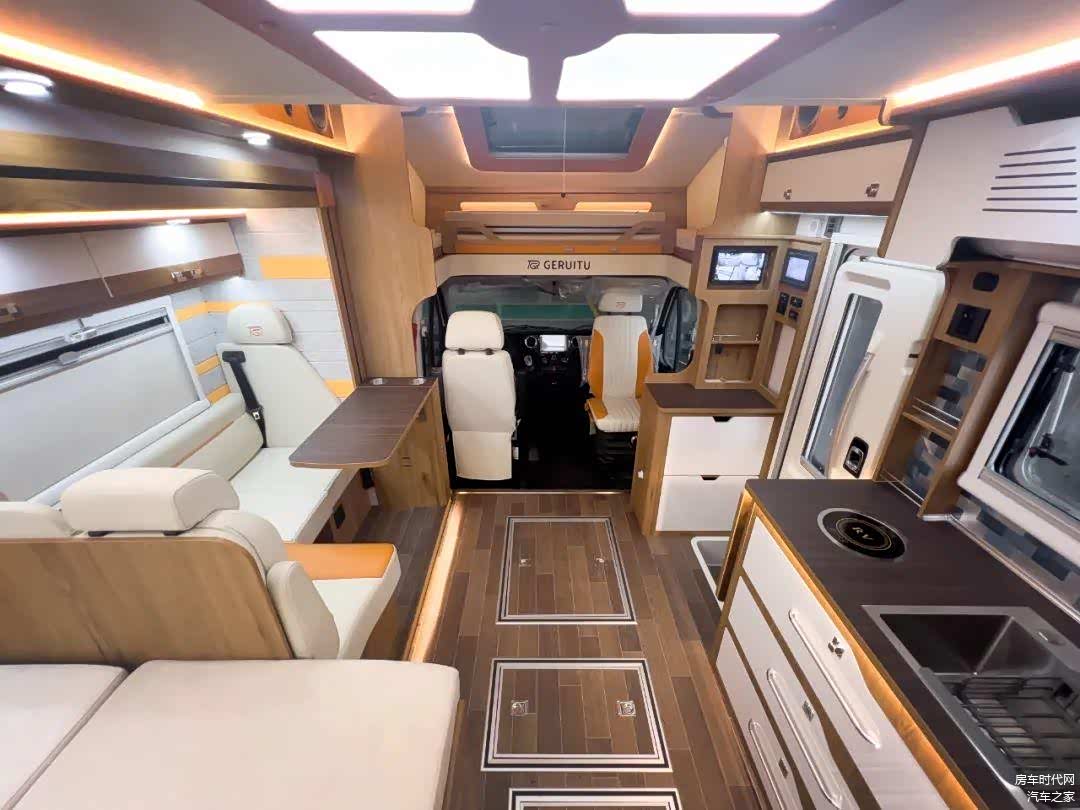 近期歌睿途房车新下线了一款基于依维柯欧胜底盘打造的单拓展车型,独特的倒“L”型拓展结构将内部活动空间以及纵床部分进行了拓展延伸,中部采用了“L”型卡座沙发+升降桌布局,内饰温馨雅致,生活区功能设施齐全,一起详细了解。