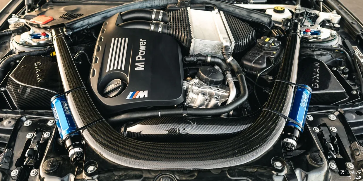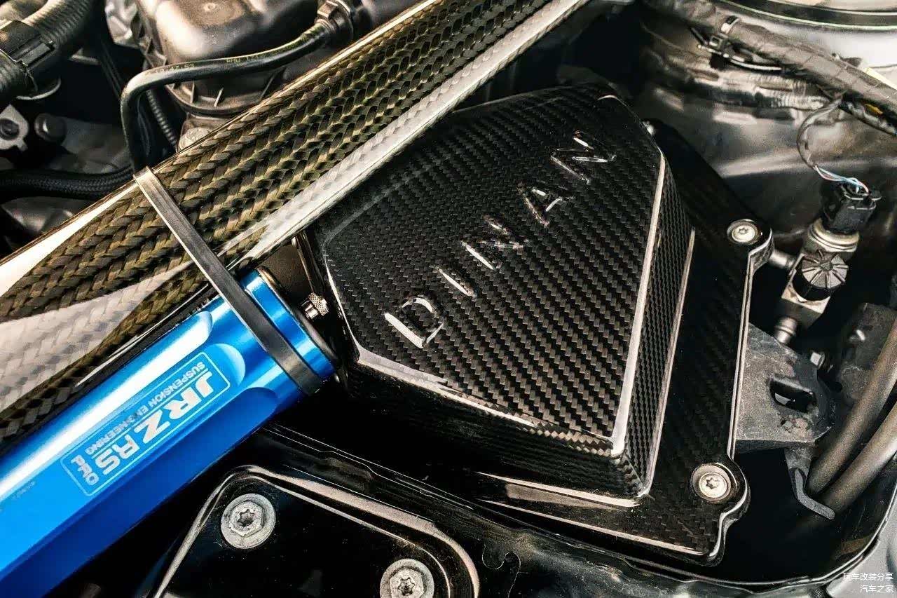 动力系统没有做太深入的改装,进气更换了DINAN的碳纤维风箱,排气也是DINAN的产品,优化周边和冷却系统的话,通过刷写ECU程序也能获得可观的动力提升。