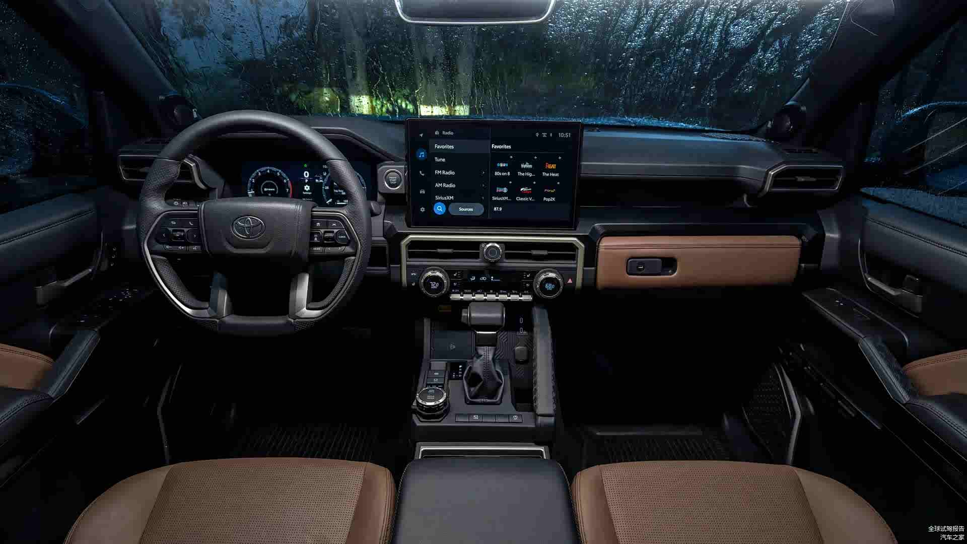 车辆内部的设计是越野车经典的繁复式设计,并没有像现在的智能车那样一味的追求简单的型面和大屏的组合。大量的物理按键和旋钮的保留,以及硬朗的特征分块,都让4Runner的内饰充满了这个时代越来越鲜有的机械感。审美这个东西说实话,还真的是物以稀为贵,看习惯了理想式的干净内饰,我还真的更愿意多看几眼这种钟表店一样的质感。而且,即便是布满了按钮,人家的大屏液晶显示器也没消失。