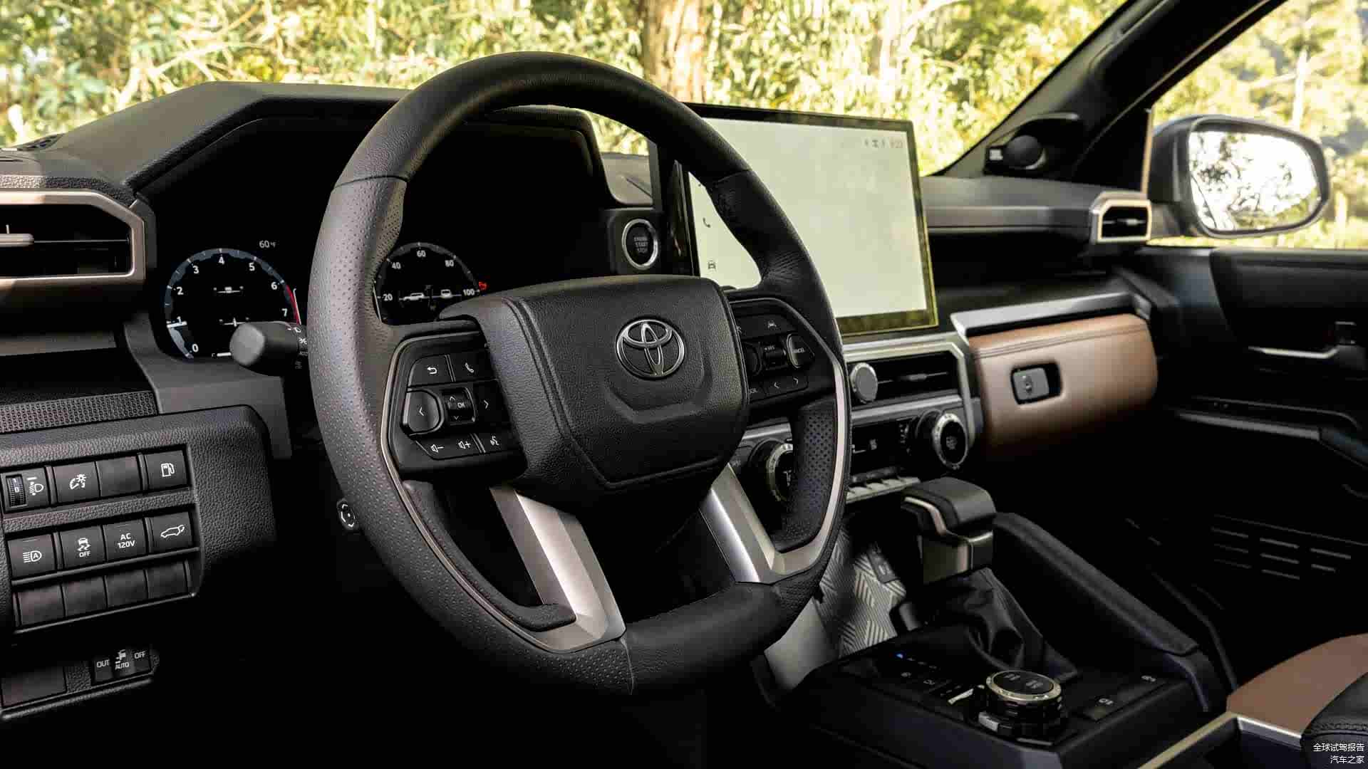 在驱动形式方面,新款4Runner依旧提供了两驱,分时四驱以及全时四驱三种驱动方式,所有两驱车型都标配了限滑差速器,而四驱车型则在这个基础上增加了加力箱以及丰田主动牵引力控制系统。另外,四驱版车型还有横向稳定杆断开机构,从而进一步提升车辆的悬架行程。标准版车型的接近角位32度,离去角位24度。