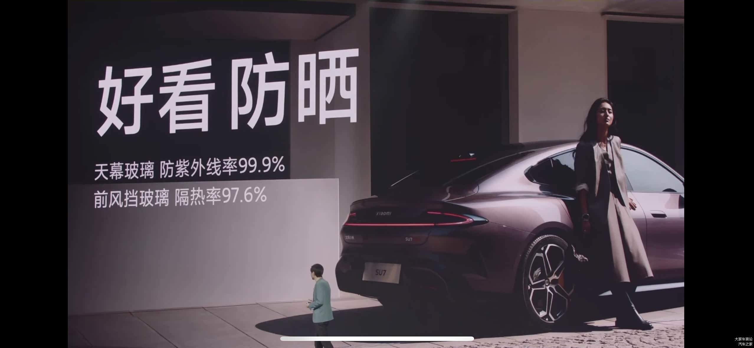 小米 SU7 应该是汽车发布会上,讲隔热防晒参数最多的车型了,甚至雷总在总结所有配置上,也说不要忘了SU7 的隔热性能。
