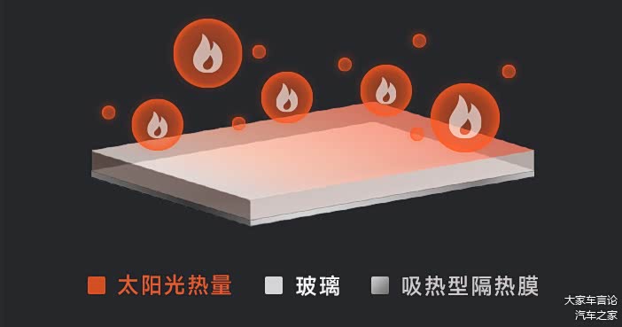 吸热型的隔热膜,主要通过纳米陶瓷颗粒,将太阳光中红外线的热量吸收并存储起来,达到隔热的目的。