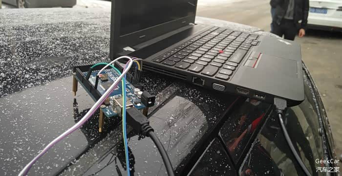 在破解现场,我们还经历了一段比较有意思的「意外」。由于受到不知名的干扰,接收器对于车辆发出的命令多次尝试仍然不成功,最后才发现是由于投影仪的遥控器的信号影响了破解设备的运作。从这一点我们可以看出,这套破解设备对于外界环境的抗干扰能力很低,需要在比较理想的情况下才能实现破解。