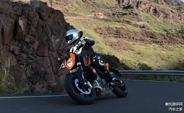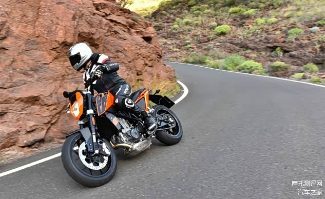 得益于一直以来追求的轻量化设计,690 Duke的性能表现让人非常满意,新款发动机也更加平稳顺畅,不过在高转速时还是能够感受到坐垫和车把传来的一些不舒服的震动。在日常行驶中,690 Duke的适应能力完全可以满足客户的通勤,即便是遇到一些颠簸路段也能够非常轻松的应对。良好的操控对于一些经验不足的新手来说也能够轻松上手,这也是KTM的优势所在。