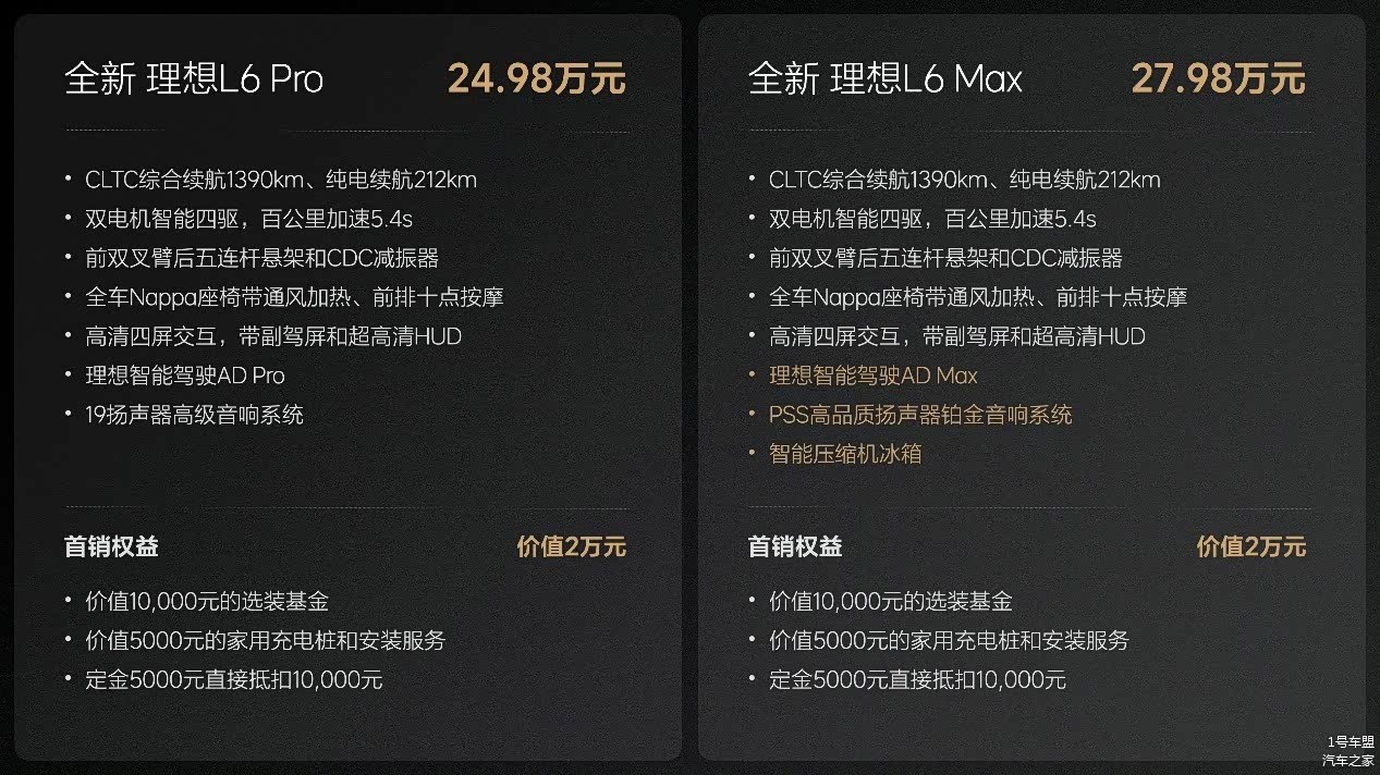 两车的成本就是在这一块拉开差距的,理想L6的电池成本更低,容量也更小,疑问点在于,理想L6这么强悍的动力又这么小的电池(两车油箱容积一致),综合续航是怎么超过问界M7的,不知道厂长是否存在“虚标”嫌疑,但是可以看出理想选择在感知度不强的电池上降本,还是为了让理想L6的价格更有竞争力。
