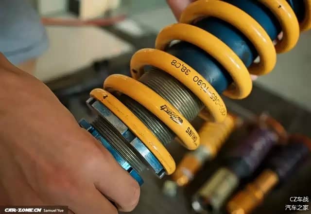 “KW,总的来说他给人的感觉,运动之余还是有舒适性的。调教方面就是没办法了,欧系减震调教的风格就是不能做一个很完全的调整,因为我装去之后必须要依靠调预载的办法去调节车身高低,而不能在不影响车子预载的情况下调车高!另外KW我最不喜欢的就是调减震预载的那个环,那个环那里面有个很小的棍子(用来固定的),横截面六角形的,它很容易掉啊,如果掉了你在开会慢慢感觉有点塌了……我自己啊,没有亲身经历过,但是我香港的那部宝马呢,用了七年了……是有这个问题的……”