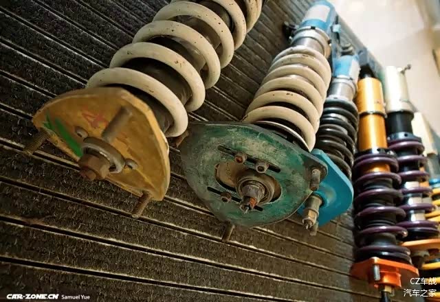 Sam:“这个减震很贵吗?”华仔:“一套两万多咯。当年日元汇率高的时候要两万多一套咯,现在我就不知道了哦,很久没碰了。”Sam:“配什么车子多?”华仔:“日系欧系都有,但是日系多咯,当年的G37啊、斯巴鲁啊、EVO啊、思域的Civic啊,再老点的EK都有的,如果是欧系呢,就宝马咯,就像宝马E90,F开头的也有,还有MINI了,GTI、R20啦都有……”